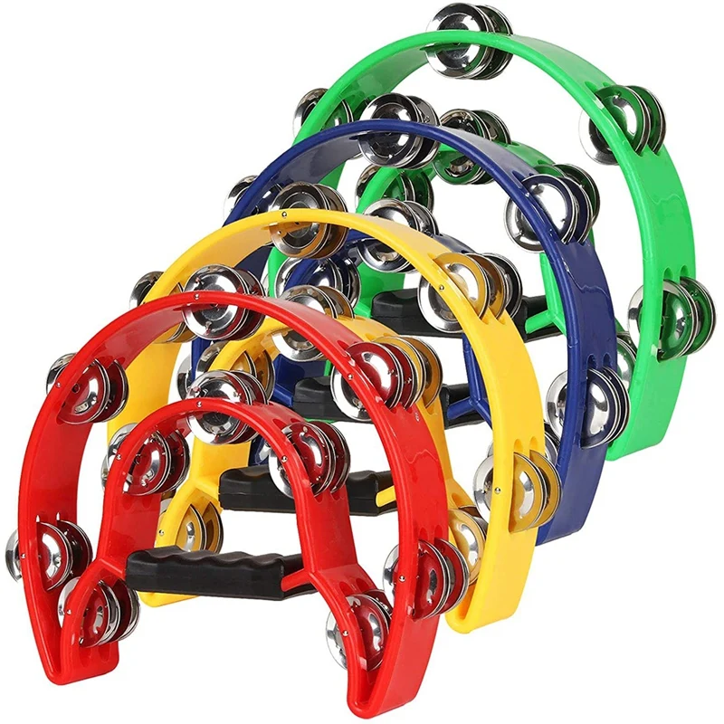 Отзывы о 4 шт 9 дюймов двойной ряд Тамбурины Металл джинглы Ручной Ударный Полумесяца