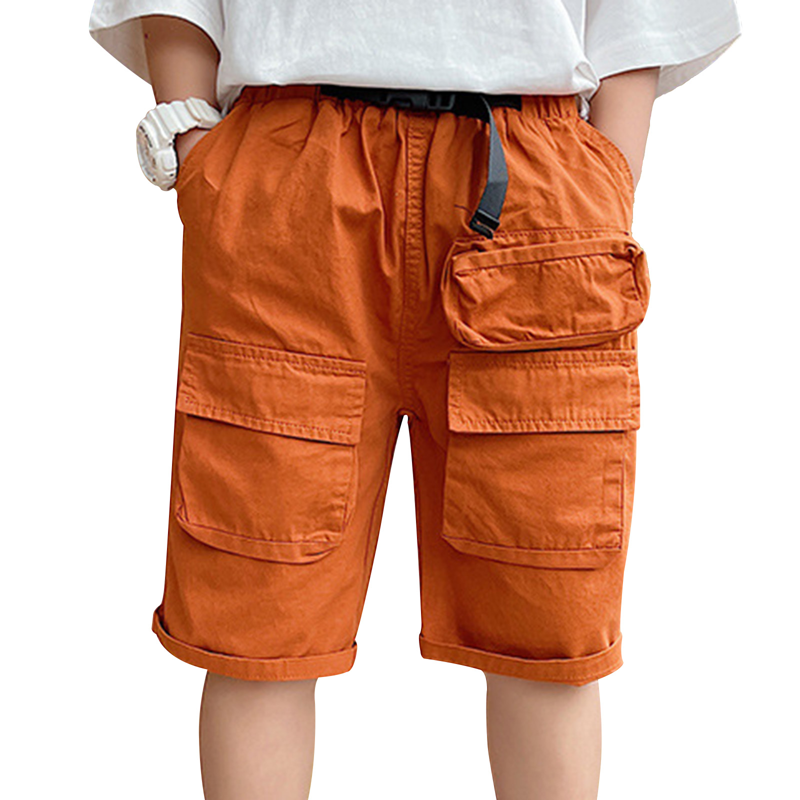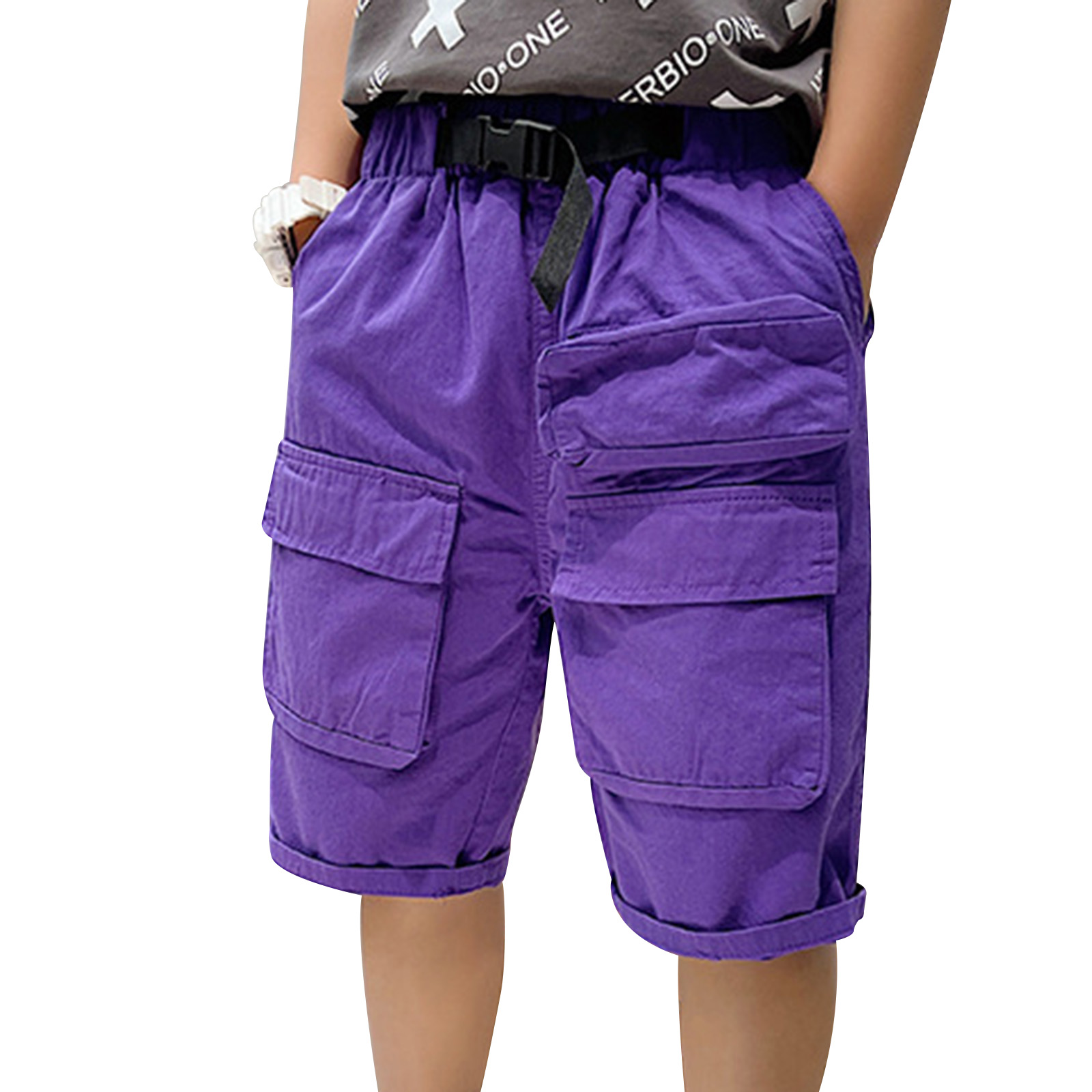 Хлопковые летние шорты для мальчиков; Чистый цвет; Эластичный пояс с прикрепленным поясом; Повседневные шорты; #110-160