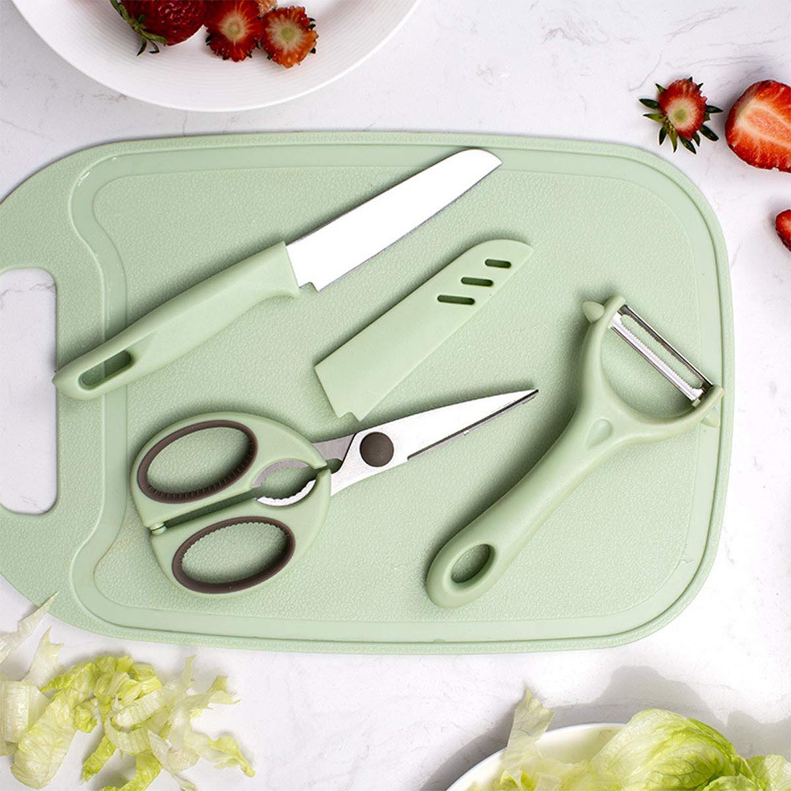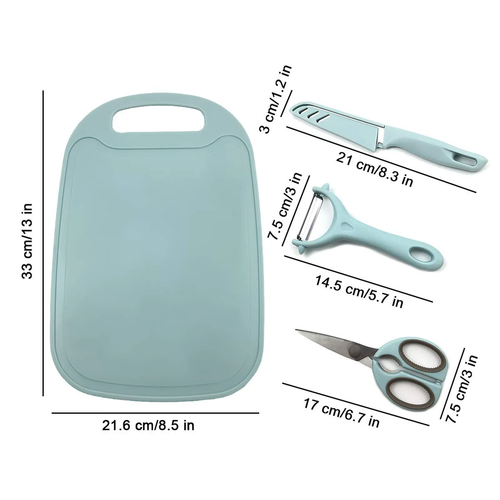 Set of 4 Kitchen Small Knife Vegetable Peeler Food Scissor Cutting Board Set