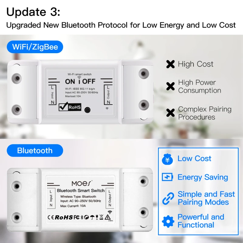 2. Беспроводной пульт дистанционного управления и Голосовое управление Alexa Google Home доступны с подключенным шлюзом Bluetooth, одним нажатием для подключения модуля переключателя к шлюзу Bluetooth для различных интеллектуальных функций; многоконтрольная связь включена в приложение Smart Life для другого способа управления без помех.