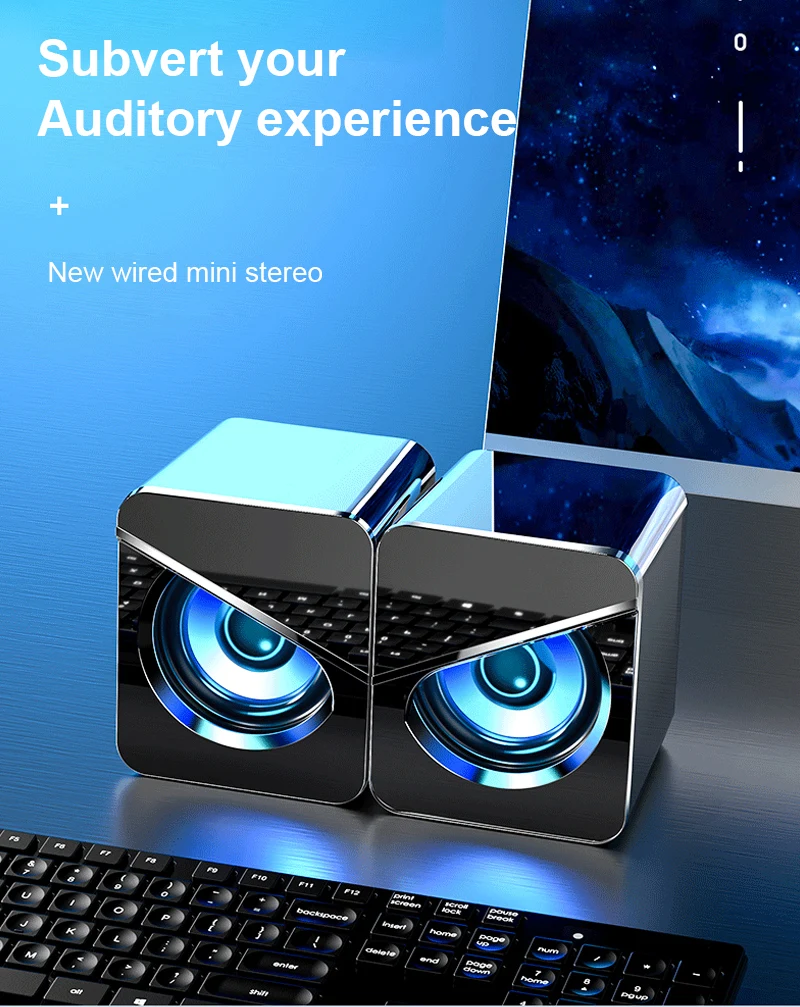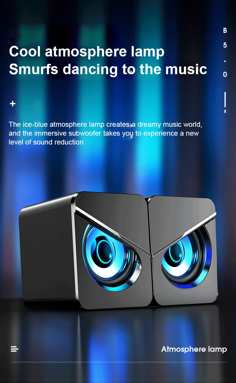 -Обновленная версия: двойные динамики, 4D стерео звук, регулировка громкости, кабель длиной около 1,4 метров, крутая освещающая, 3,55 мм и USB интерфейс