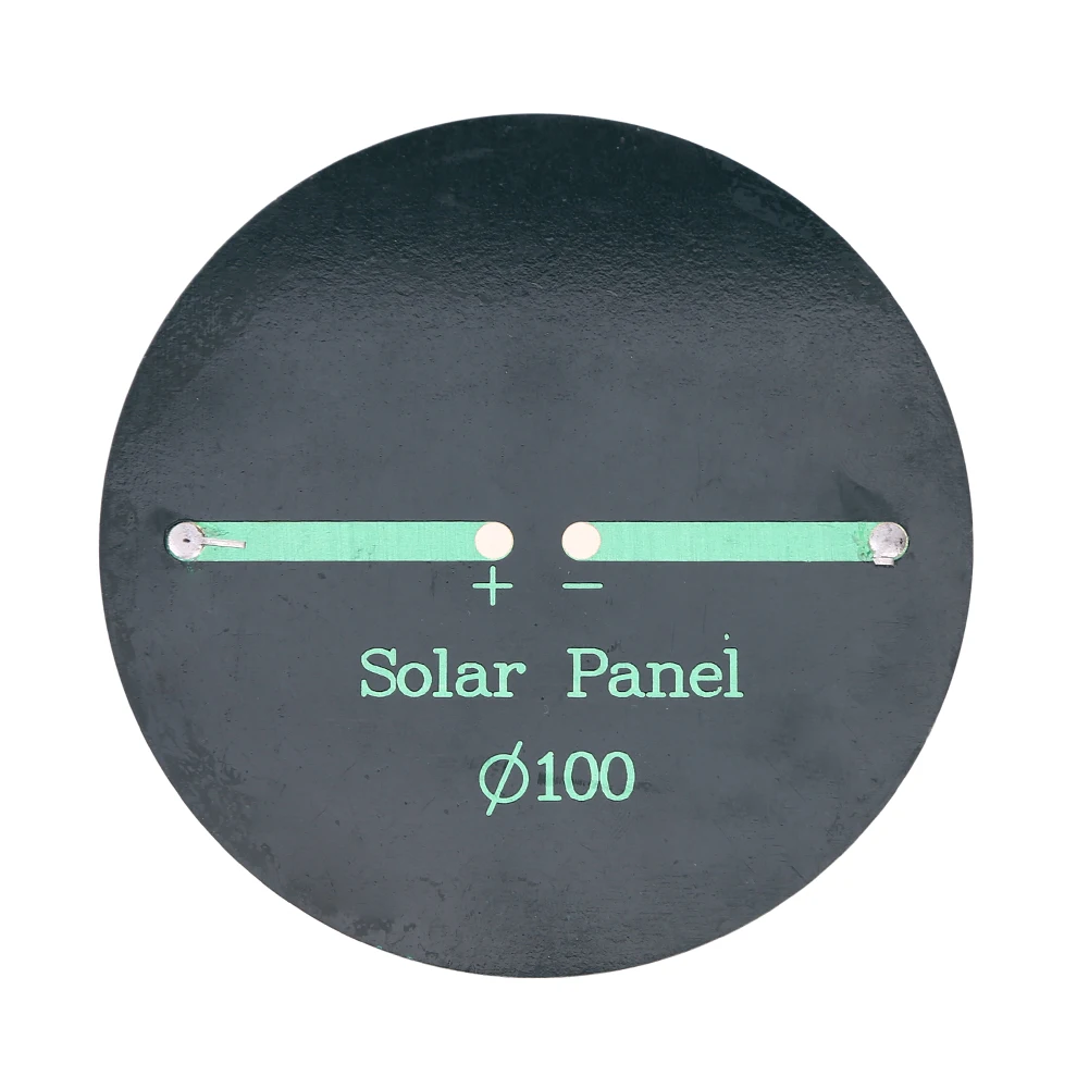 6V 0,8 W Круглый эпоксидный поликремний модуль солнечной панели 24 солнечных элементов 100 мм диаметр для DIY солнечных проектов Спецификация: Мощность панели солнечных элементов: 0,8 W Рабочий ток: 0-135ма Рабочее напряжение: 6 В Защита от короткого замыкания Напряжение: 7,2 V Размер: 100*100 мм (круглый) Процесс: эпоксидная доска Тип: поликремний Количество: 1 шт., 2 шт. Применение: Солнечное садовое освещение Небольшая домашняя система освещения Уличное солнечное освещение Наружная солнечная реклама Подходит для всех видов маломощных электрических приборов, аварийных огней, рекламных огней, светофоров, бытовых огней, электрических вентиляторов, таких как солнечные водяные насосы, солнечные уличные фонари, небольшие солнечные системы Примечание: Возможны незначительные отклонения в размере из-за ручного измерения, различных методов измерения и инструментов. Изображение может не отражать фактический цвет изделия из-за различного фотографирования светильник, угол и дисплей монитора.