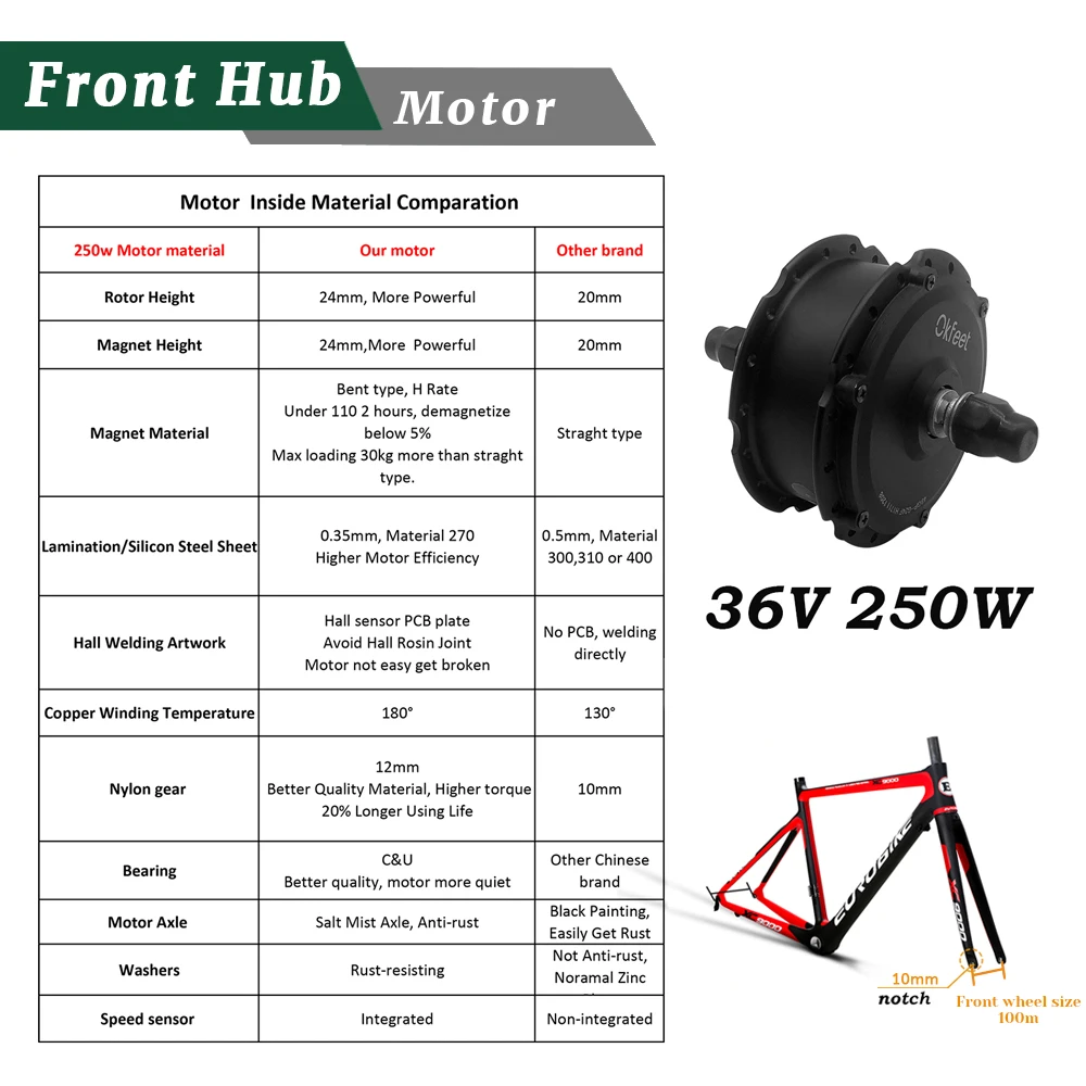 36V 250W Комплект переднего мотора ступицы(Водонепроницаемая вилка)