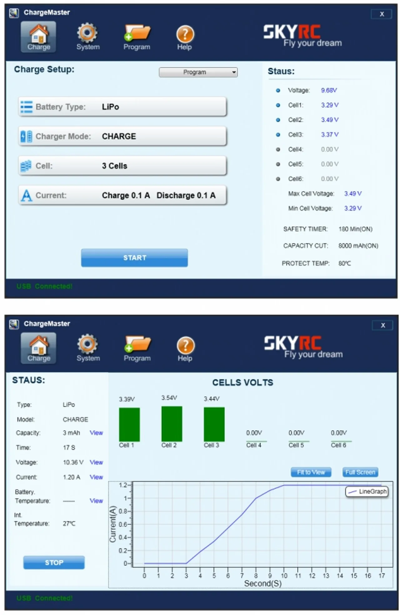 Бесплатное (зарядное устройство master) программное обеспечение может управлять зарядным устройством через компьютер. Вы можете отслеживать общее напряжение, напряжение одной ячейки и другие данные зарядного устройства. Вы можете наблюдать за данными зарядки через графику в реальном времени. Вы можете начать и контролировать зарядку через (зарядное устройство master) и непосредственно обновить прошивку.