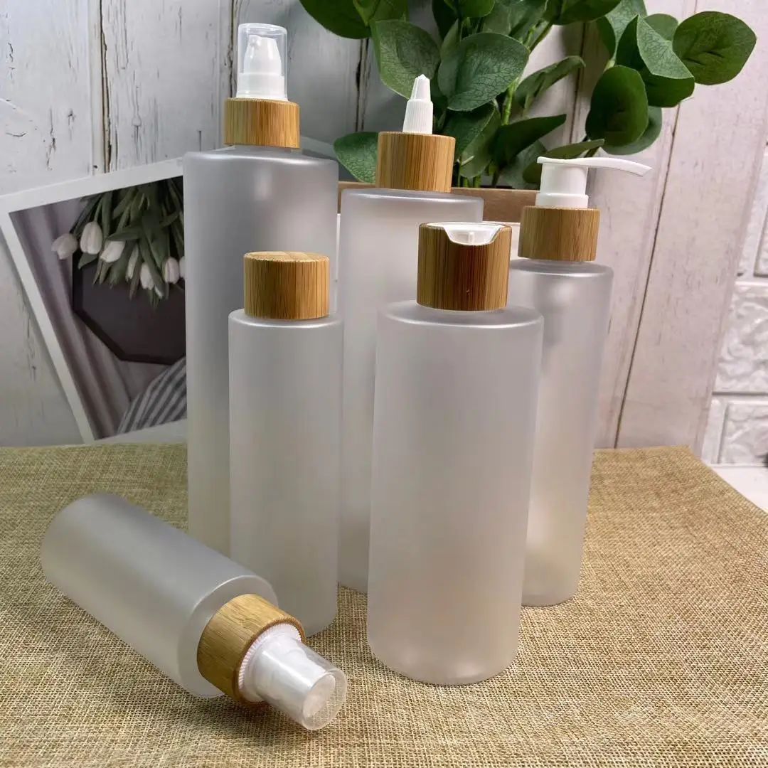 120 мл 250 мл матовая коричневая ПЭТ бутылка с бамбуковым насосом для лосьона 4 унции 8 унций пластиковая бутылка для шампуня 500 мл пластиковая бутылка для мыла для рук
