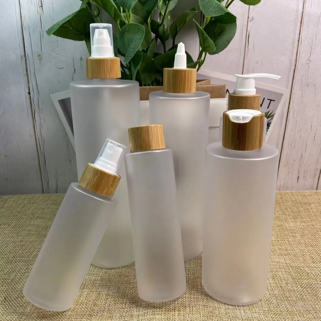 Отзывы о Косметическая бутылка-распылитель с бамбуковой крышкой для лосьона матовый