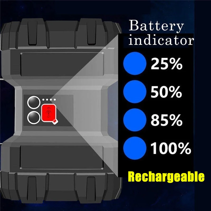 -Он обеспечивает дальность освещения до 300-500 метров и два разных режима освещения, идеально подходит для освещения всей комнаты или лагеря.