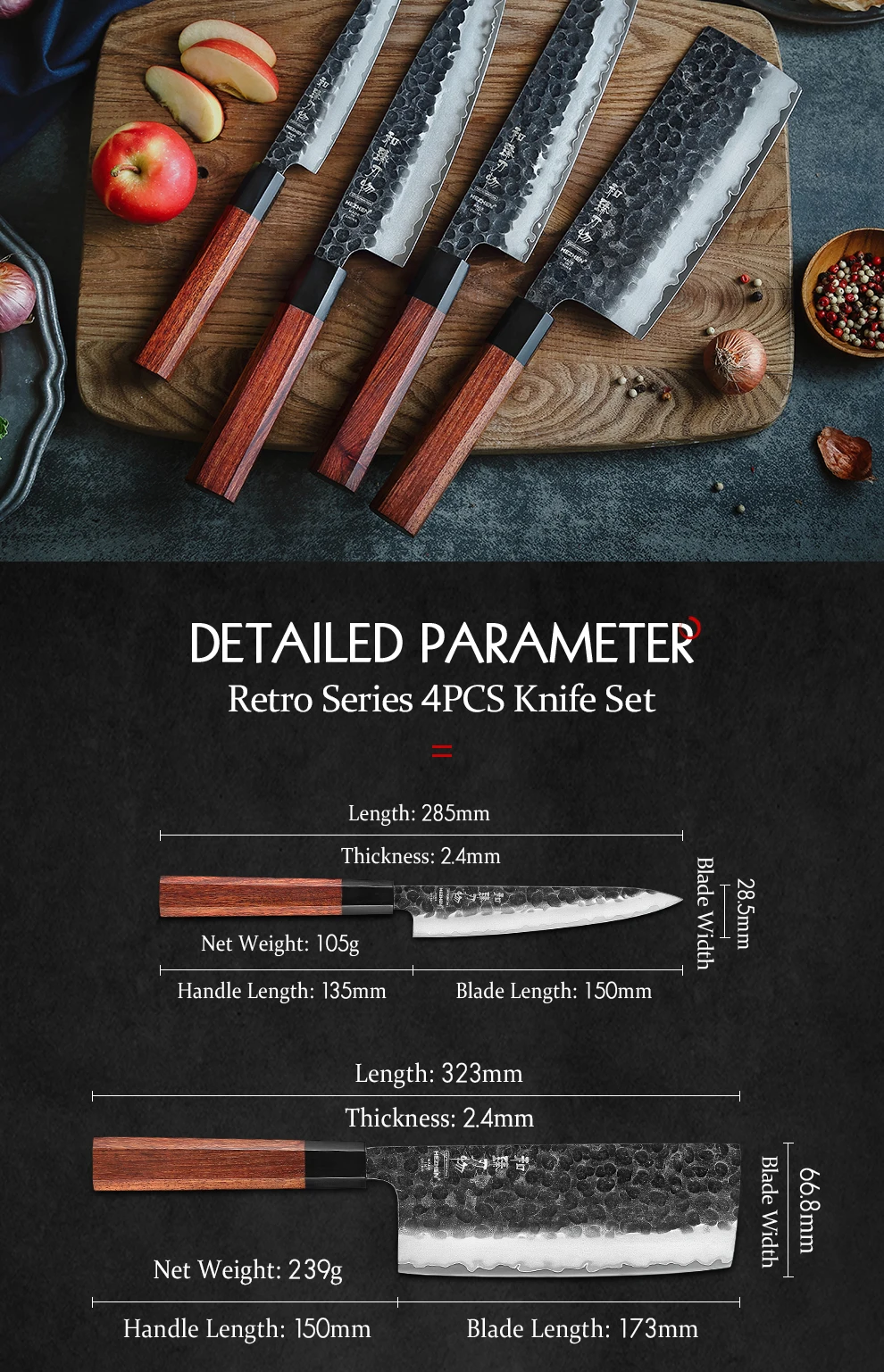 HEZHEN Ретро серии 4 шт набор кухонных ножей