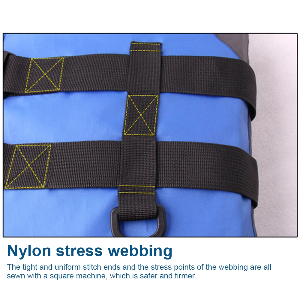 【Nylon stress webbing and leg safety double-span belt】 The tight stitching ends, and the stress points of the webbing are sewn with a square machine, which is safer and firmer; the lower gear webbing crosses the crotch to make the lifejacket firmly fixed, After falling into the water, the life jacket will not fall off due to the impact of water, which is very safe and reliable