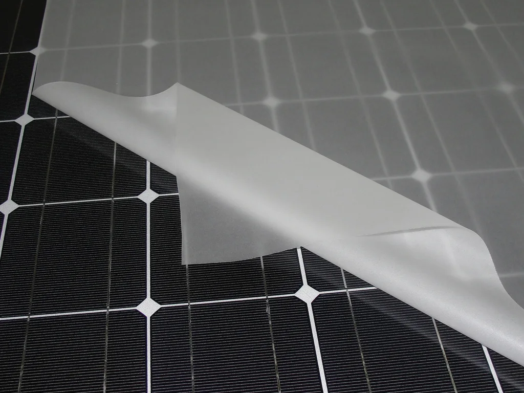 Эва пленка для солнечных элементов, кристаллических кремниевых элементов, тонкопленочных фотоэлектрических элементов и других компонентов в упаковочном материале. Содержание 30% -33% EVA смолы в качестве основного сырья, сделанные через специальный процесс, с сильное склеивания, высокий светильник передачи, анти-старение характеристики.