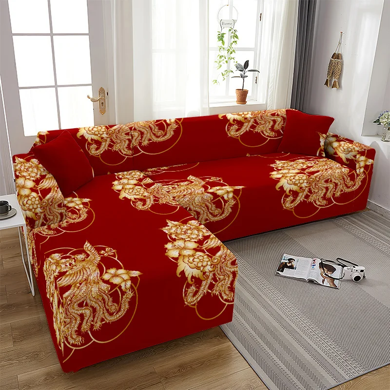 Красные чехлы для диванов в китайском стиле эластичные гостиной полотенца