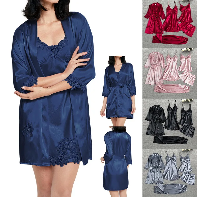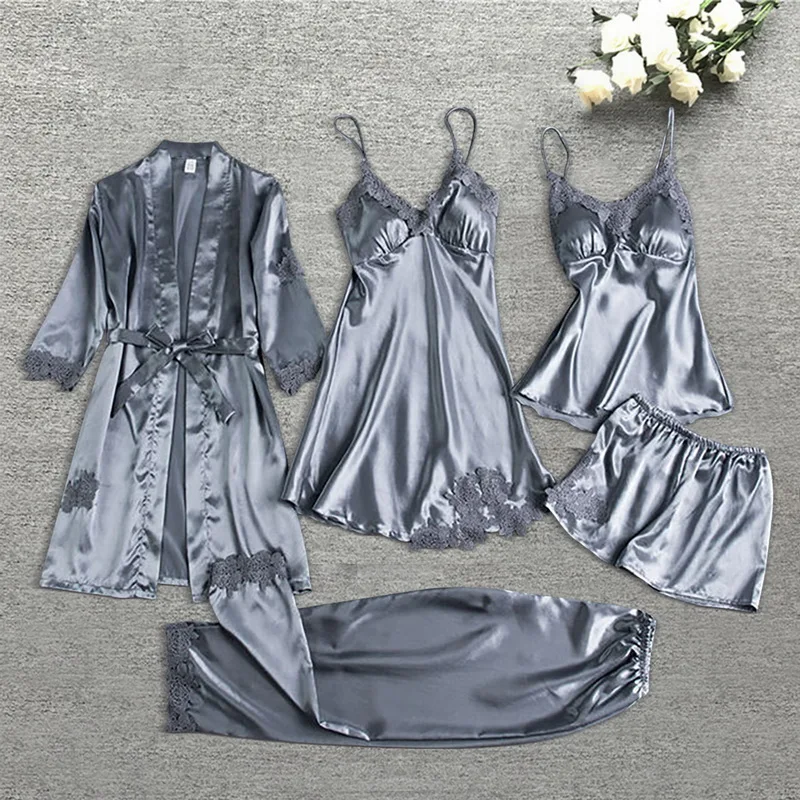 Отзывы о Пижамный комплект Женский атласный кружевной 5/4/2 шт. | Женская одежда