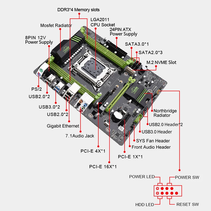 1 * LGA 2011-V2 материнская плата1 * кабель SATA1 * Задняя панель1 * кронштейн радиатора LGA2011CPUКомплексное тестирование перед отправкой