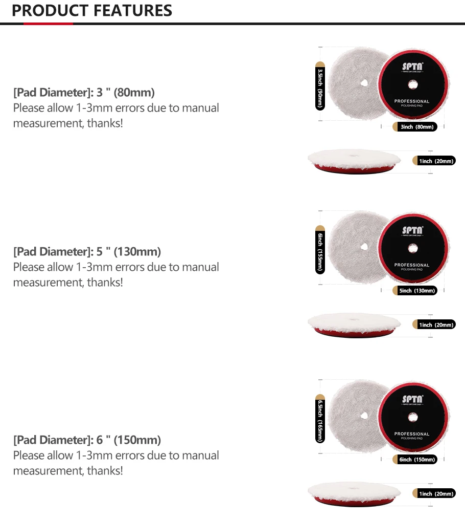 Отзывы о (Single Sale) SPTA 3"/5"/6" Fast Finishing Microfiber Polishing Pad Pads Buffing Disc Kits For DA/RO Car Polisher | Автомобили