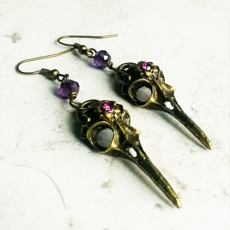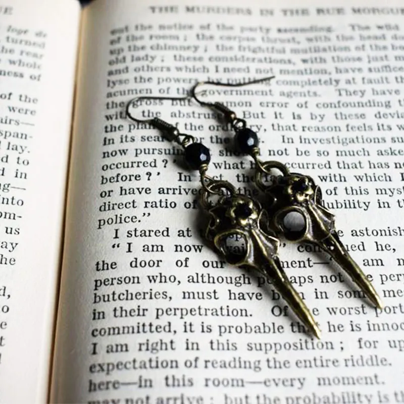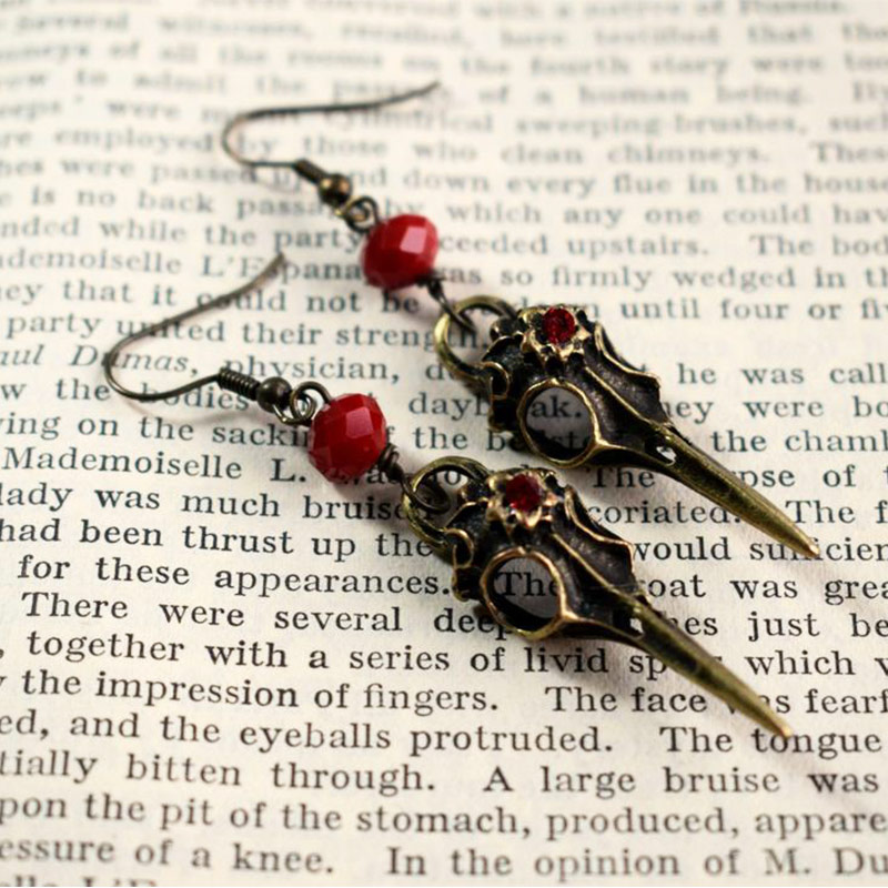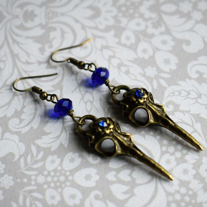 Отзывы о Античная бронза череп ворона с хрустальными бусинами висячие серьги в стиле