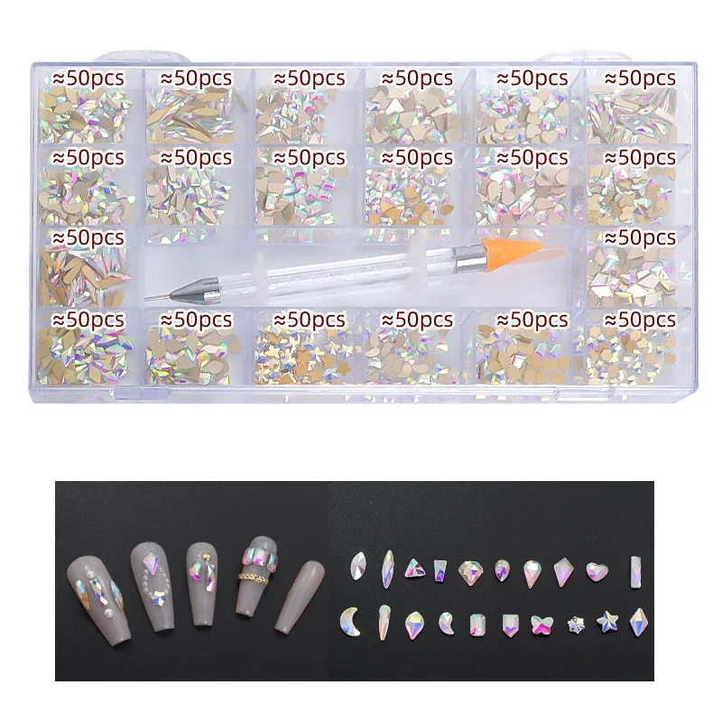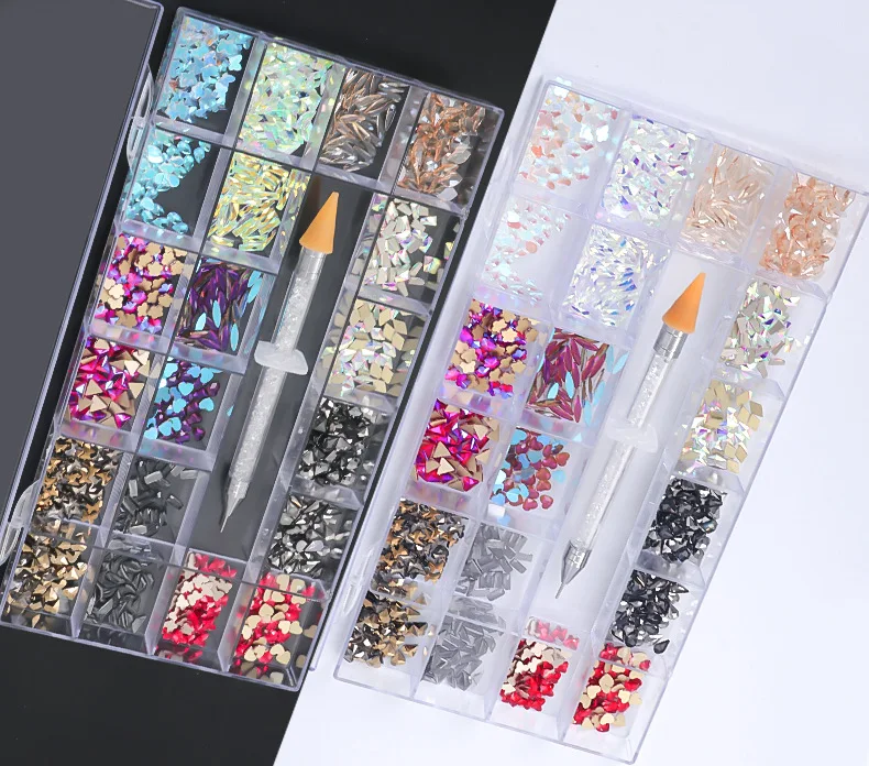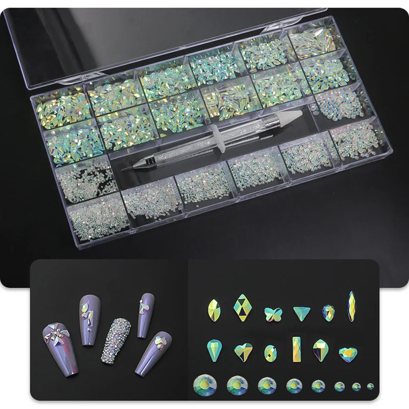 Отзывы о Стразы для ногтей 21 ячейка с 1 точечной ручкой кристаллы AB DIY s стеклянные камни