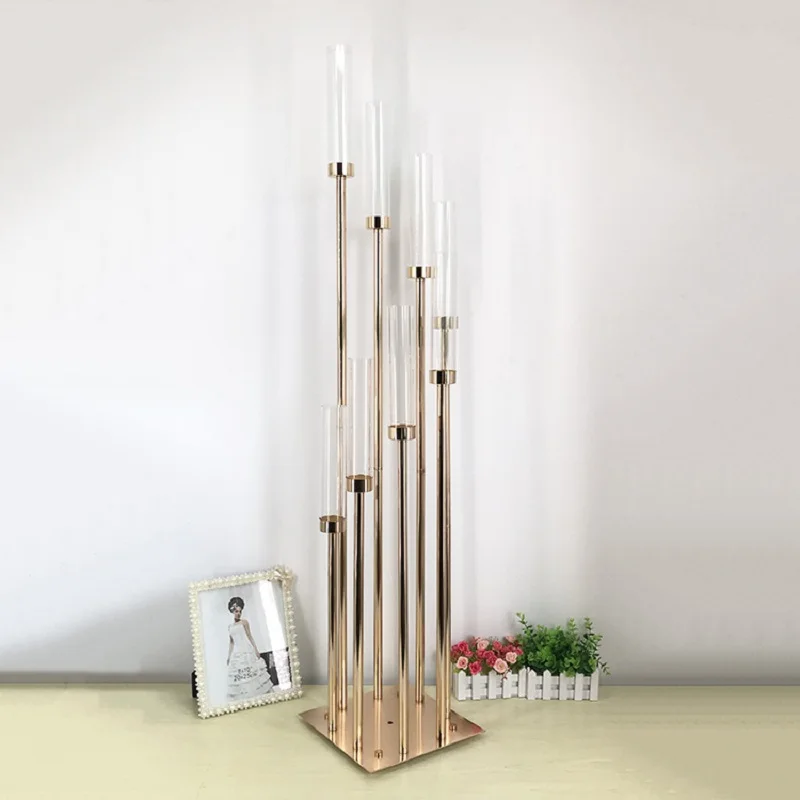 8 головок металлический подсвечник золотой подсвечник акриловый свадебный стол центральный подсвечник украшение канделябр