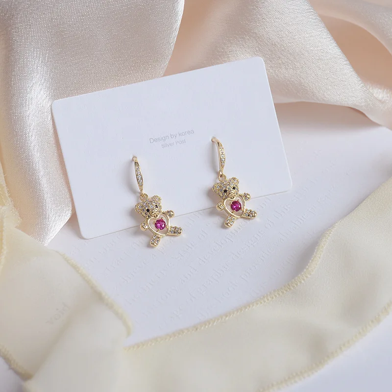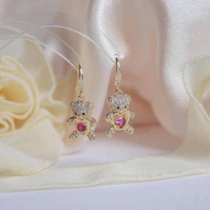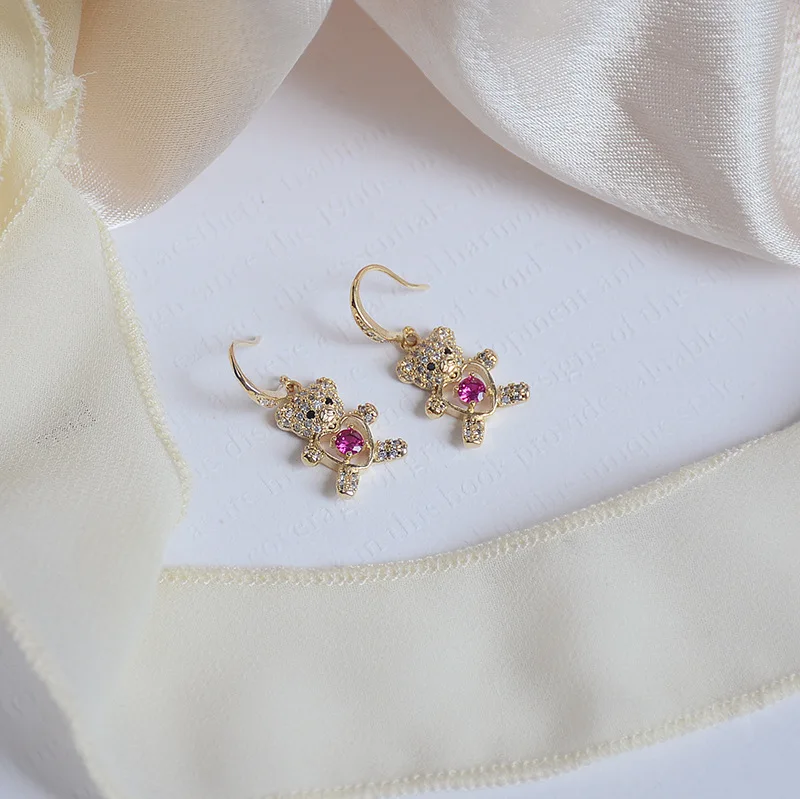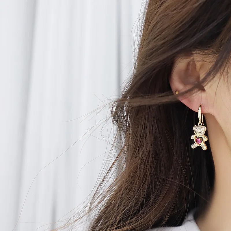 Отзывы о Женские позолоченные серьги в форме сердца персиковые с медведем 14 к 2021 - купить
