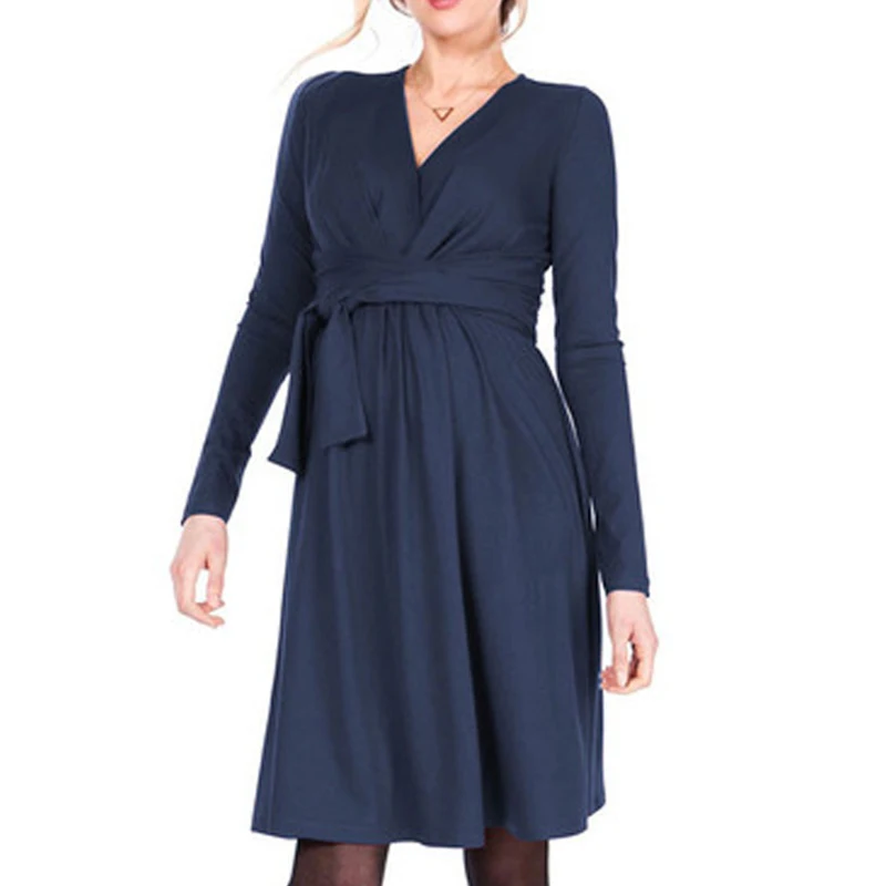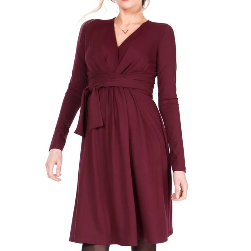 Повседневная для кормления женское платье с длинными рукавами для беременных с регулируемым поясом с v-образным вырезом платья для грудного вскармливания размера плюс