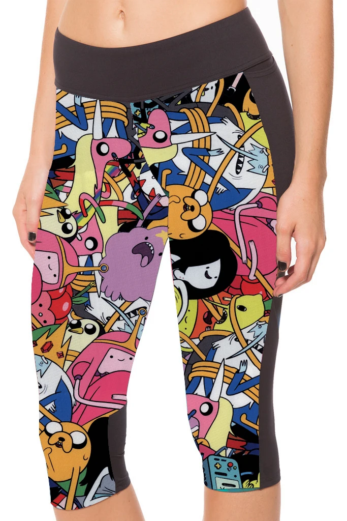 Женские летние спортивные Капри для фитнеса с милым мультяшным принтом, размера плюс, леггинсы для бега, тренажерного зала, бодибилдинга, 6 моделей