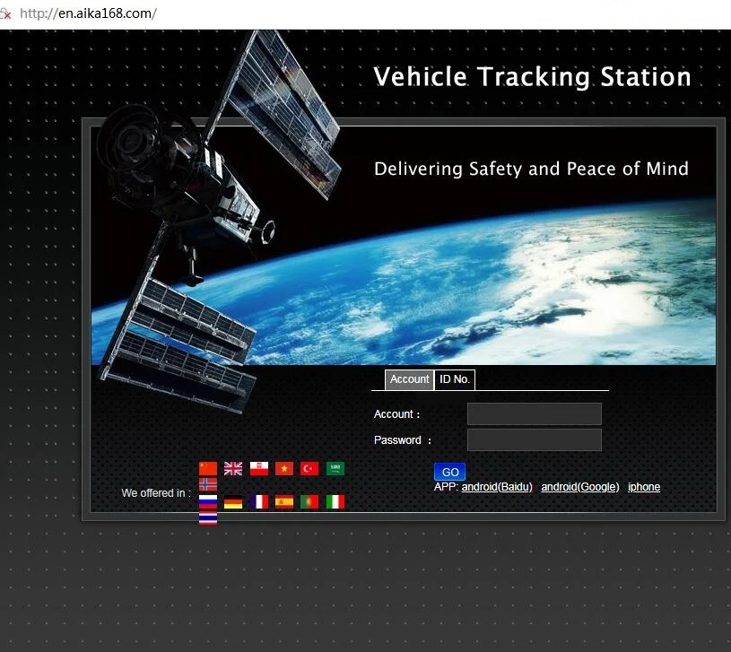 Как разместить логотип на платформе:Откройте веб-сайт http:en.aika168.com, Выберите ID.No. , введите ID No. За gps, и используйте пароль 123456, затем ОК показать, как показано ниже: