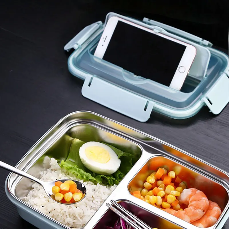 Четыре сетки Ланч-бокс/миска для супа с крышкой/ложка из нержавеющей стали и палочки для еды/мобильный телефон держатель