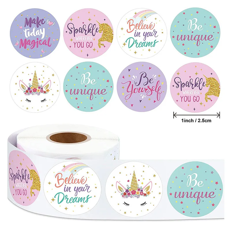 Отзывы о 500 шт./рулон 1 дюйм Единорог Стикеры Детская награда подарок Этикетка для