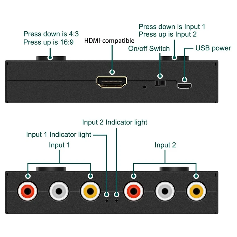 Отзывы о 2 порта AV-HDMI-совместимый конвертер RCA-HDMI-совместимый адаптер Поддержка 4:3/16:9 PAL SECAM