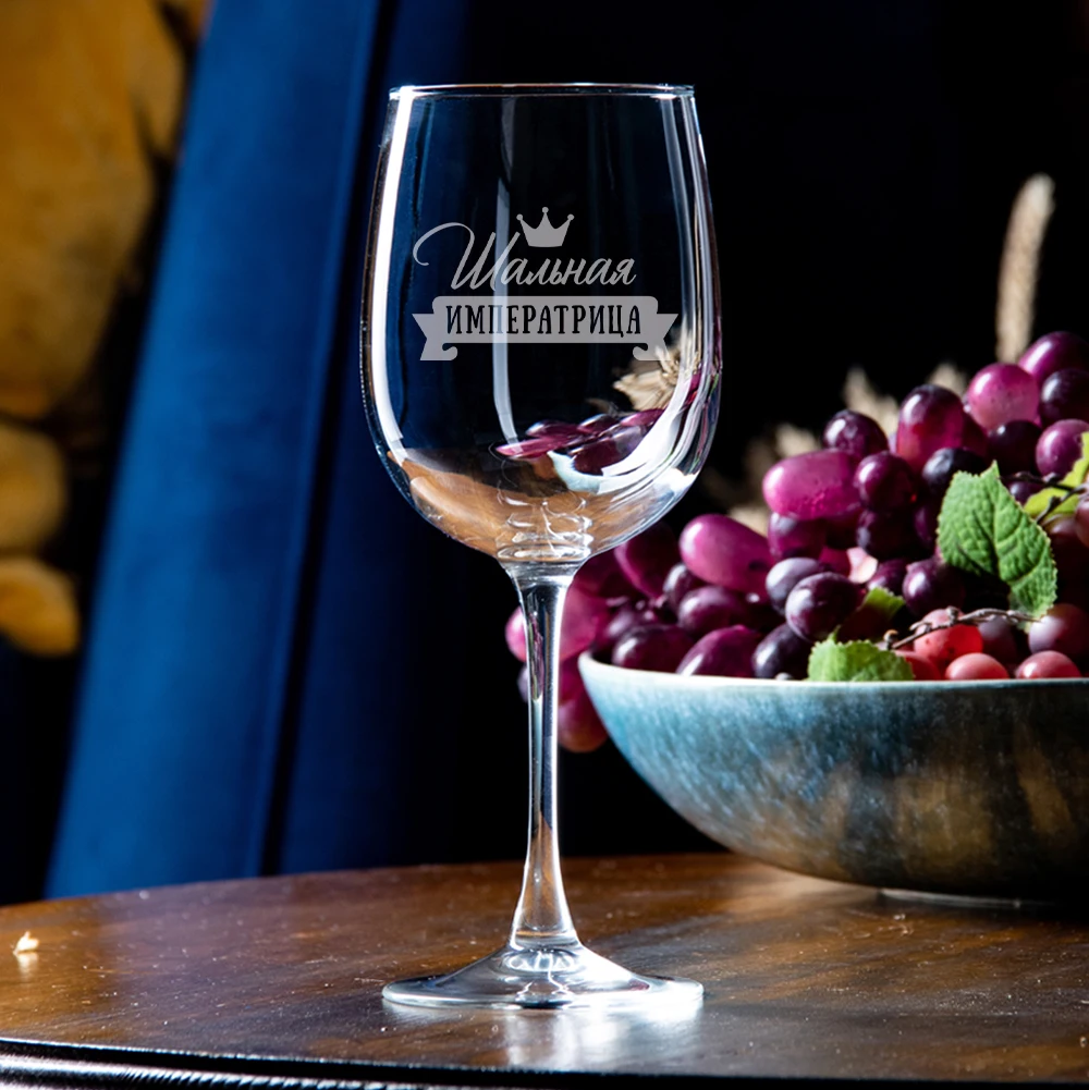 Бокал для вина "Шальная императрица" объемом 550 мл с нанесением текста методом лазерной гравировки.