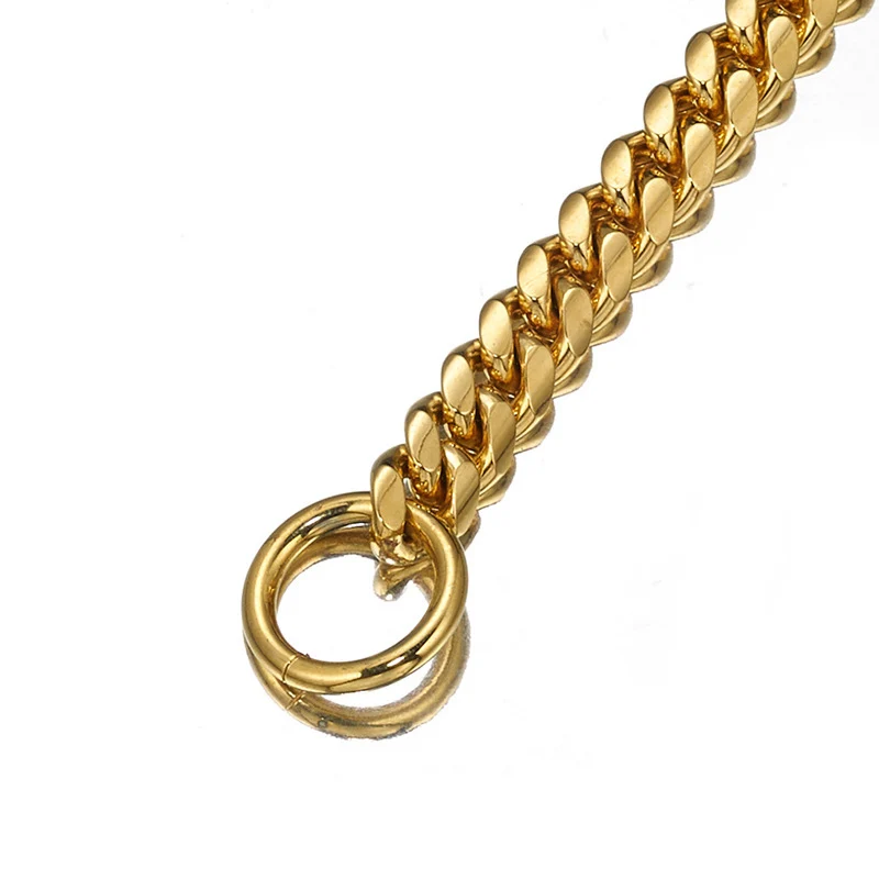 10 мм Золотая цепь для собак из нержавеющей стали, цепь для дросселя, роскошный ошейник для больших собак, кубинское ожерелье, противоскользящий тренировочный ошейник для собак PitbullПохожие товары