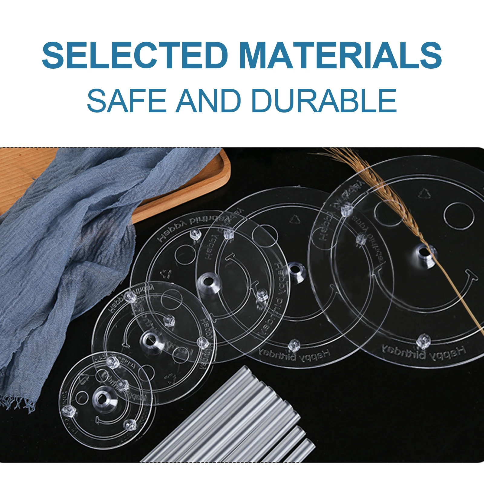 Надежный и прочный: эти стержни для торта и пластины для разделителя торта изготовлены из качественного пластика с гладкой поверхностью, что является безопасным и надежным для пищи, может выдерживать износ, не легко сломать, прочный для использования в течение длительного времени.