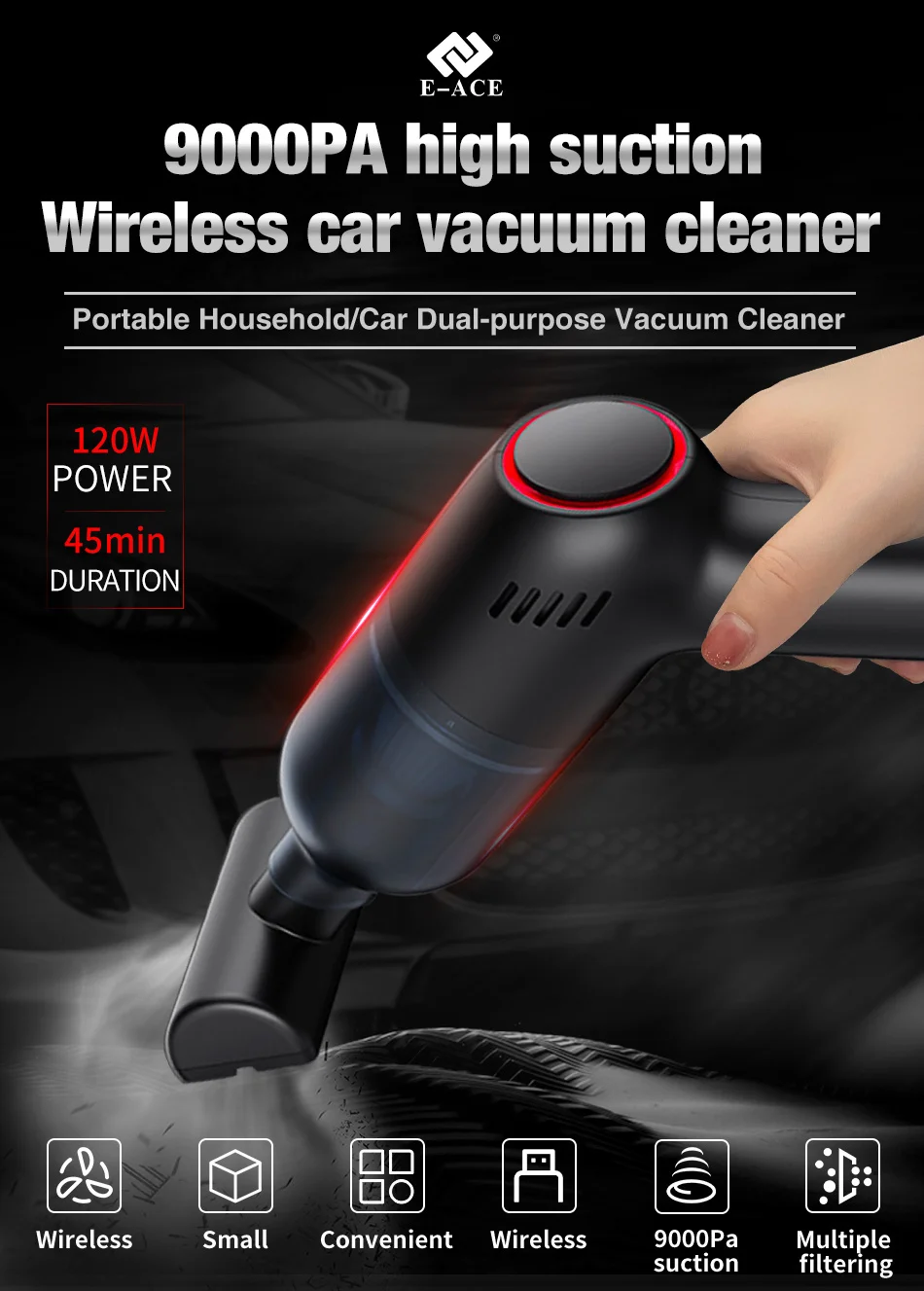 Отзывы о E-ACE M17 Портативный Ручной Автомобильный дом пылесос для ковров Высокая мощность