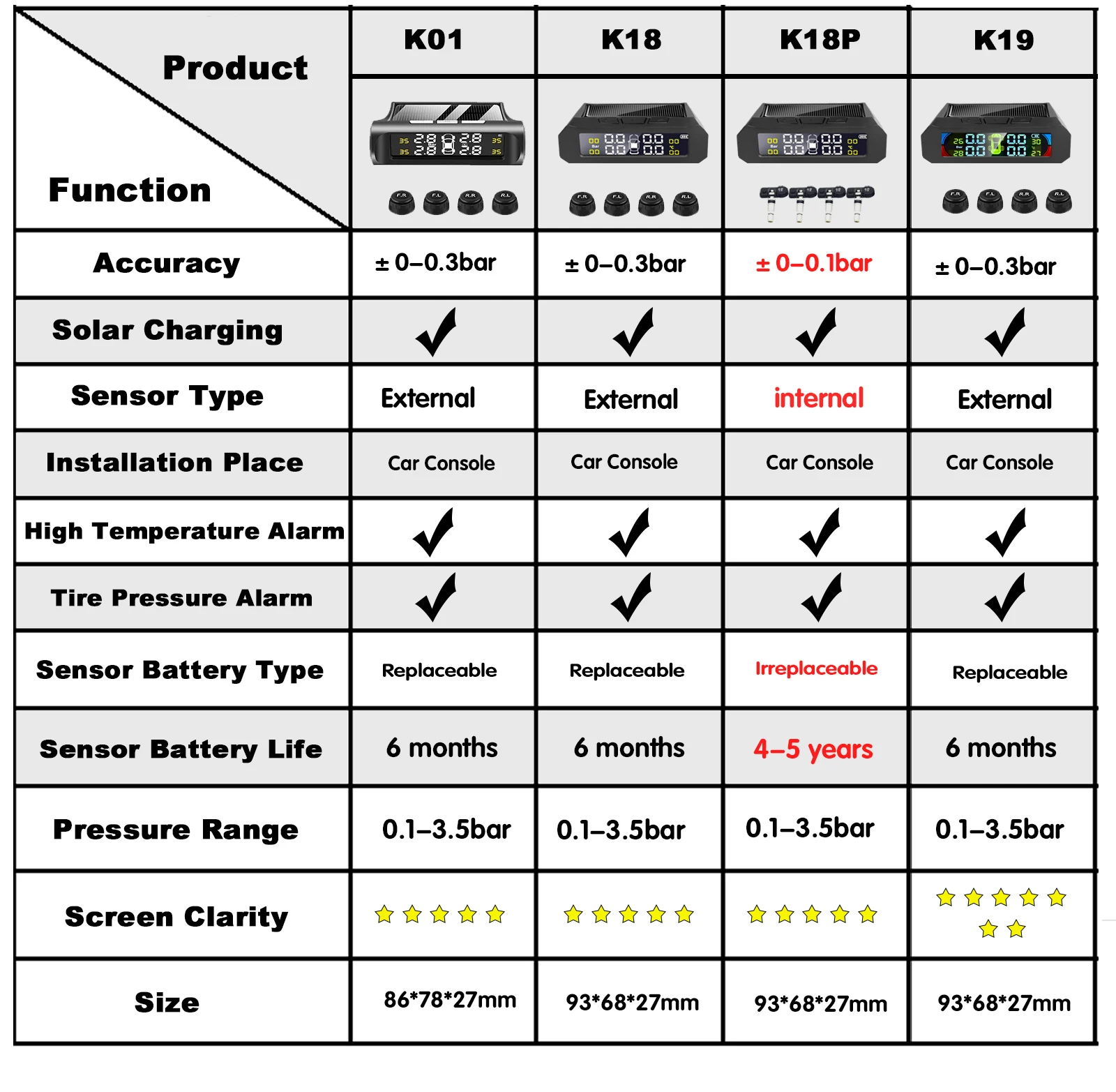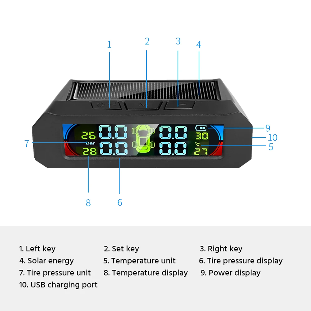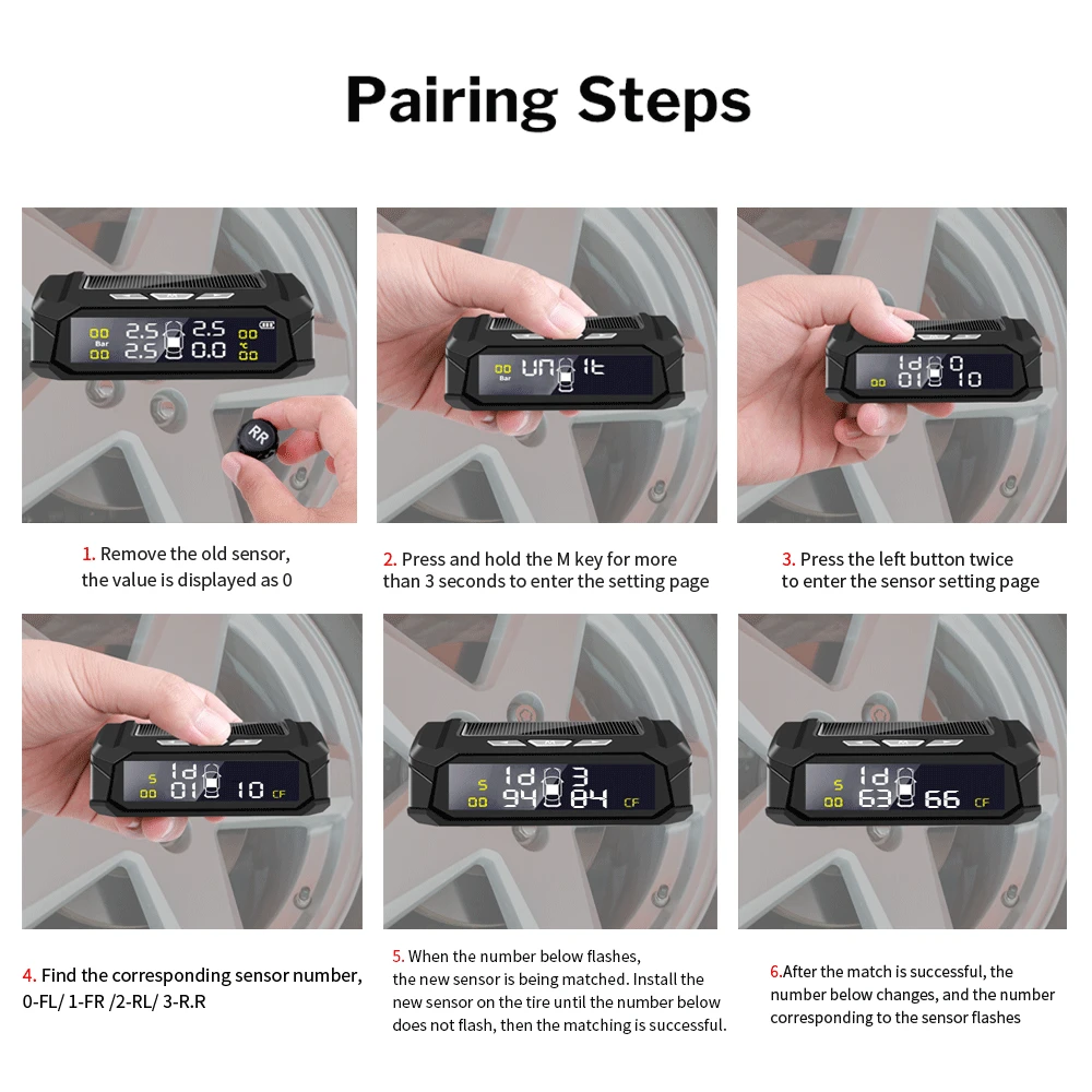 •Водонепроницаемый уровень IPX7Для 4 датчиков давления в шинах, антикоррозийный и прочный