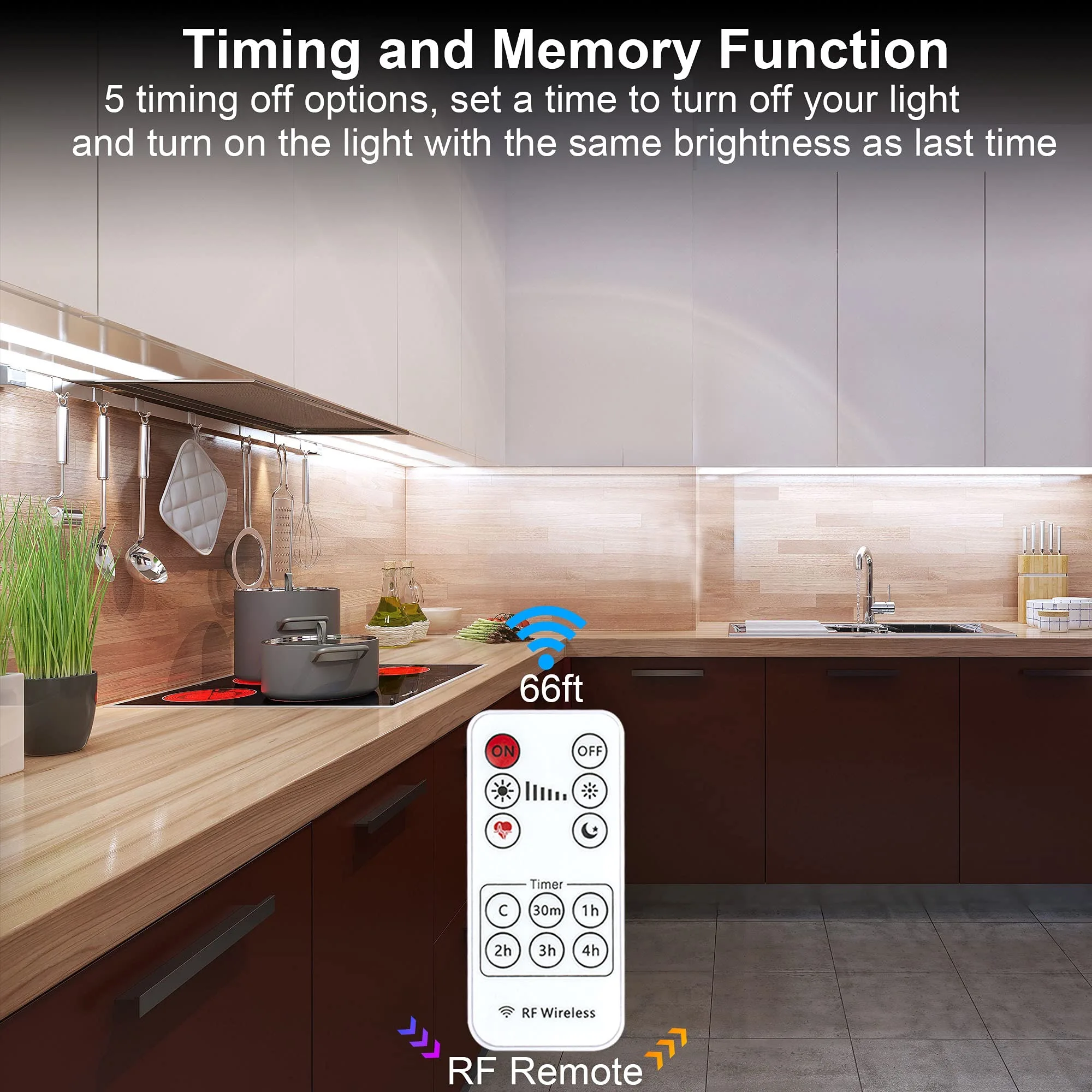 Двойное управление: освещение шкафа может управляться с помощью радиочастотного беспроводного пульта и мини-диммера. Пульт дистанционного управления RF включает/выключается, 6 уровней яркости, 2 режима светильник и 5 функций отключения времени, мини-Диммер может контролировать включение/выключение и яркость