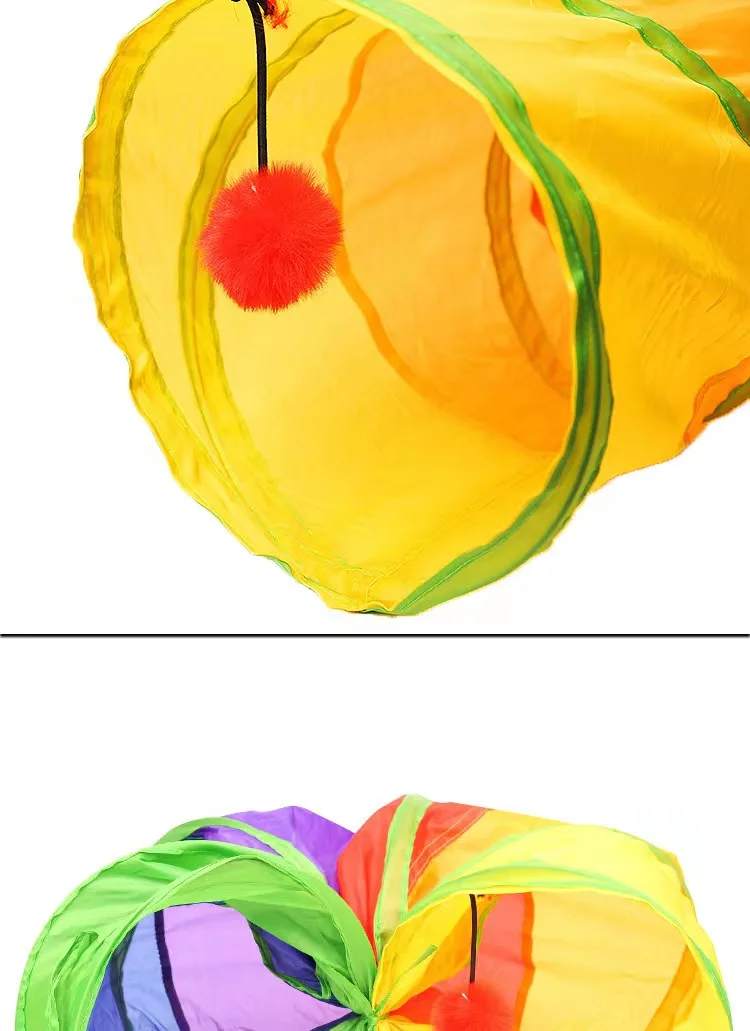 Кошки могут видеть Радужный внешний вид и просторный тоннель, встроенный crinkle crackle paper, и мягкие мячи, также имеют два отверстия, эта популярная трубка дает вашему котенку больше способов веселиться. Он обеспечивает часы упражнений и развлечений.