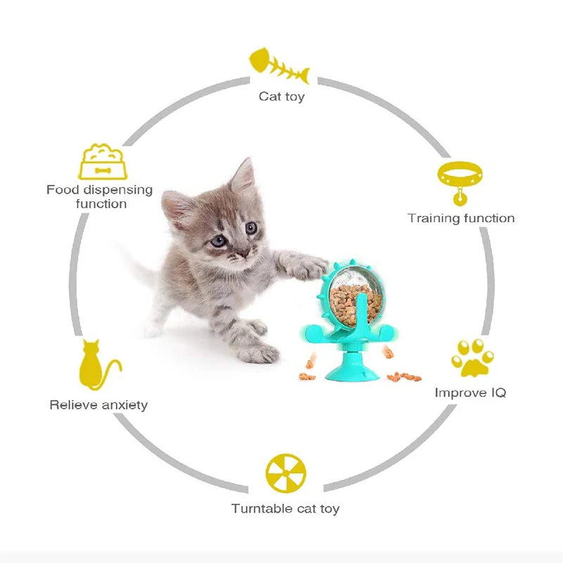1. Это Многофункциональная игрушка для домашних животных с такими функциями, как утечка пищи, ветряная мельница и спиннинг. Несколько дизайнов привлекают интерес домашних животных к игре.