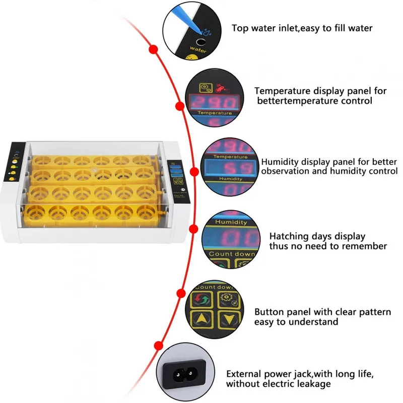 Емкость: 24 КУРИНЫХ яйца, 12 утиных яиц, 24 перепелиных яйца