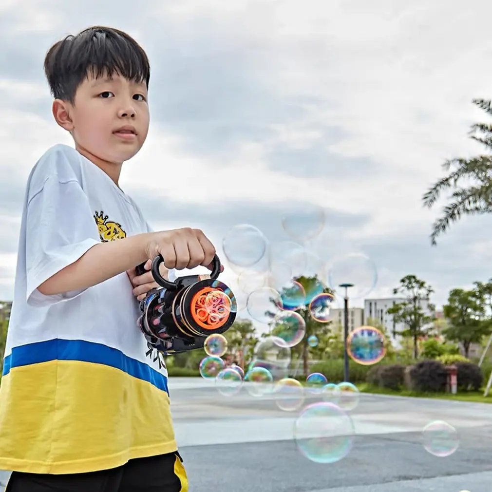 4. Концепция дизайна: пузырьковая машина Gatling имеет Пузырьковые отверстия, которые могут выдувать сотни пузырьков в минуту. Вечерние Пузырьковые машины также могут быть использованы в качестве маленького вентилятора, чтобы принести прохладный и удобный ветер.