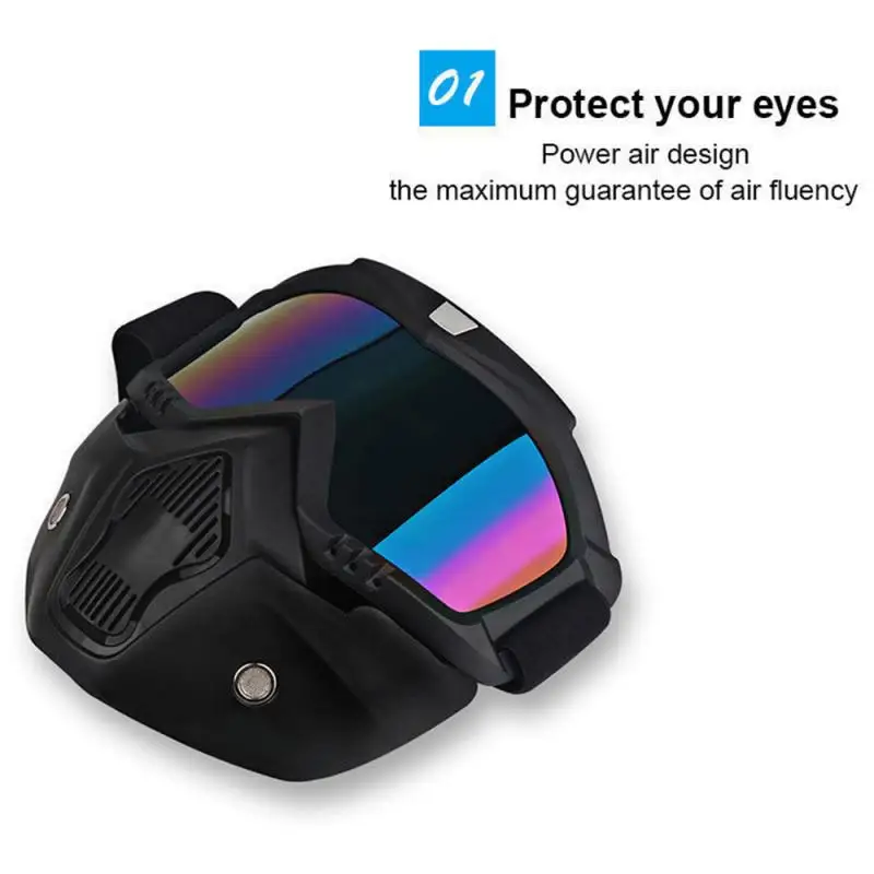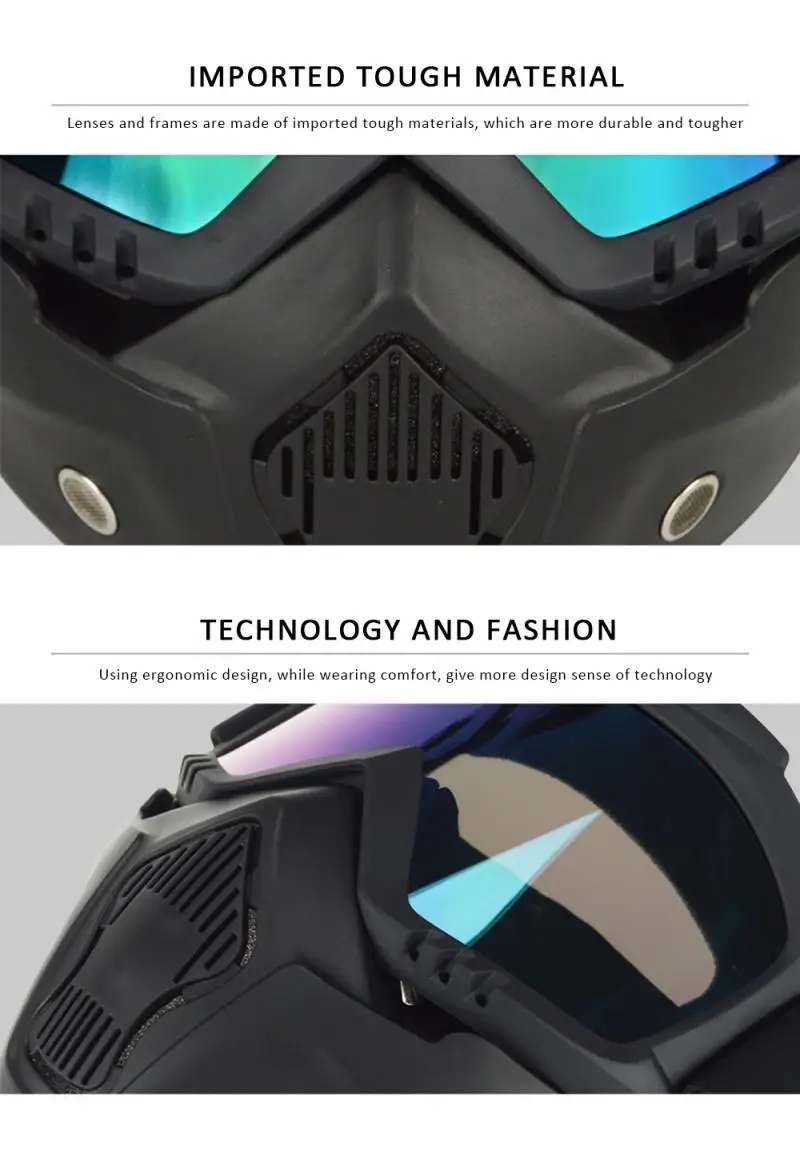 Стильные очки со съемной маской, поэтому очки можно использовать отдельно. И маска со слотом и очки с отверстием, которое легко установить и разобрать.