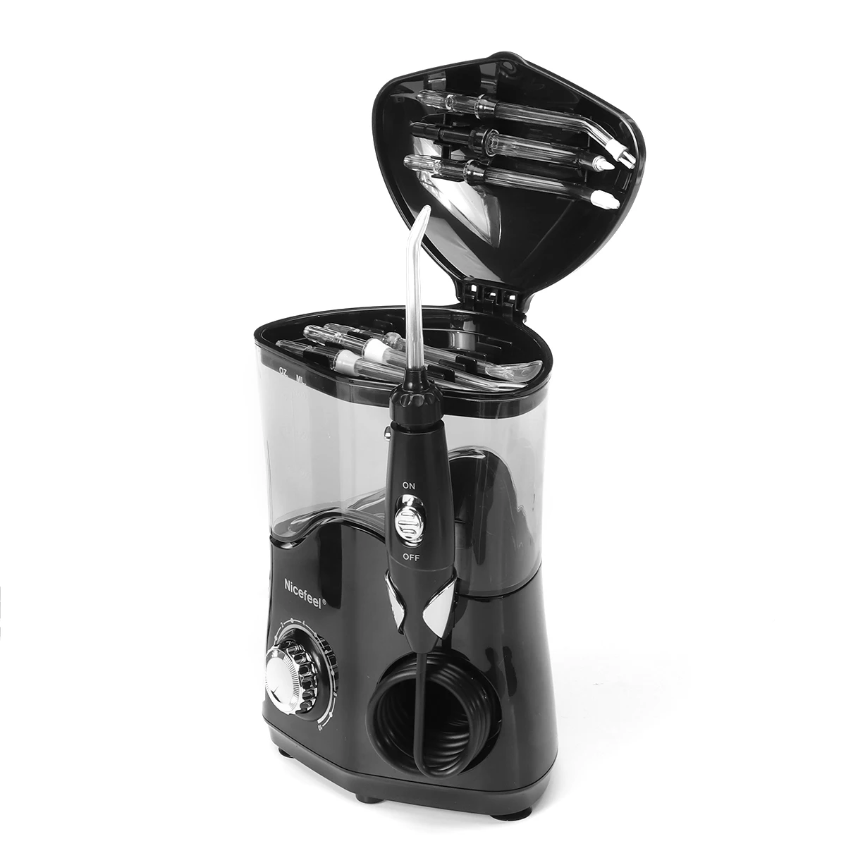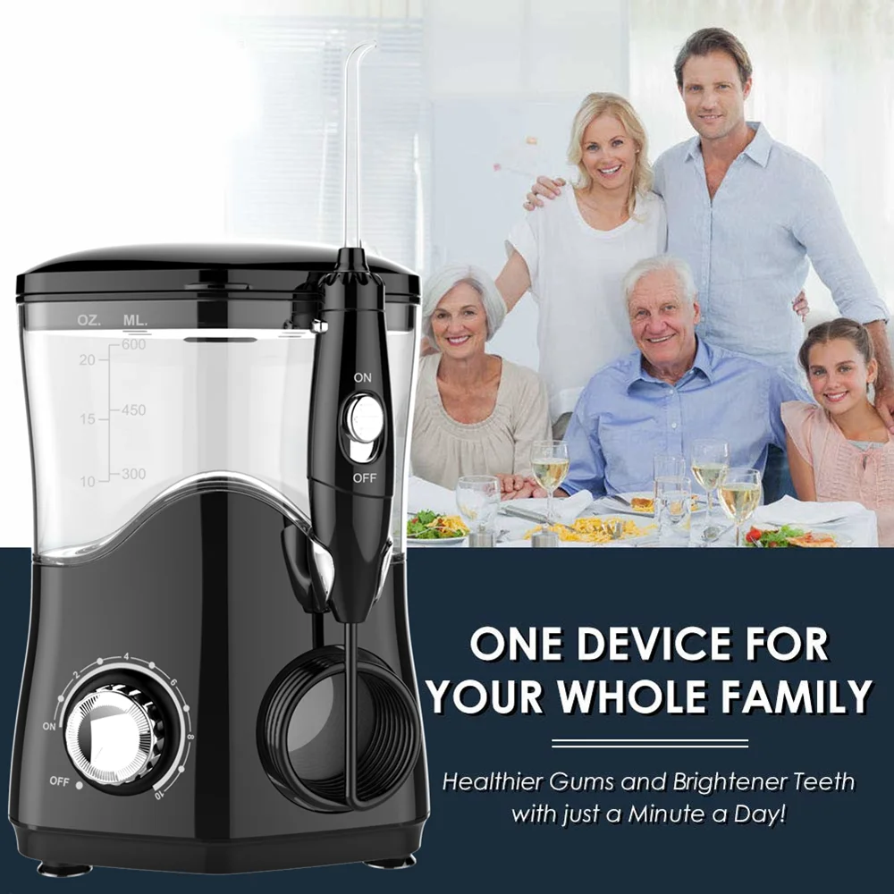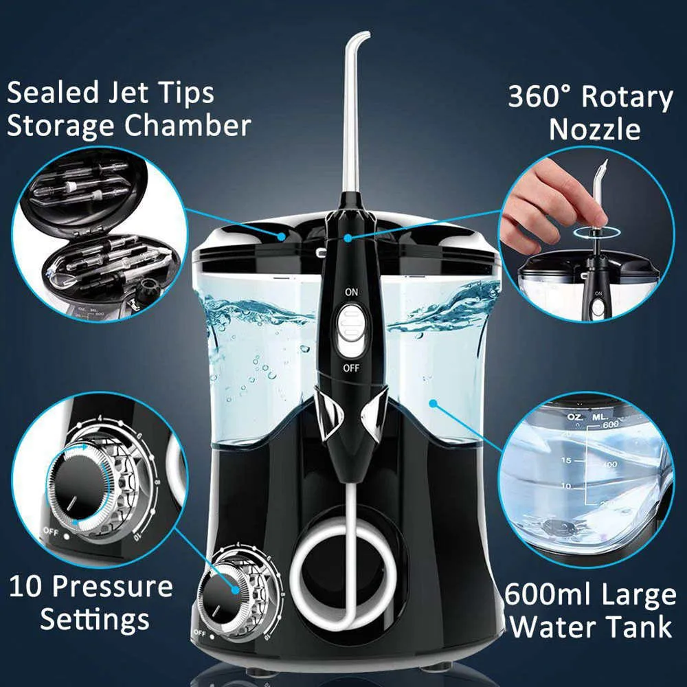 Зубная вода очиститель зубов-Nicefeel FC162 Высокочастотный импульсный водный Электрический ирригатор полости рта с 7 взаимозаменяемыми насадками для брекетов, имплантатов, мостов, 600 мл большой емкости черный