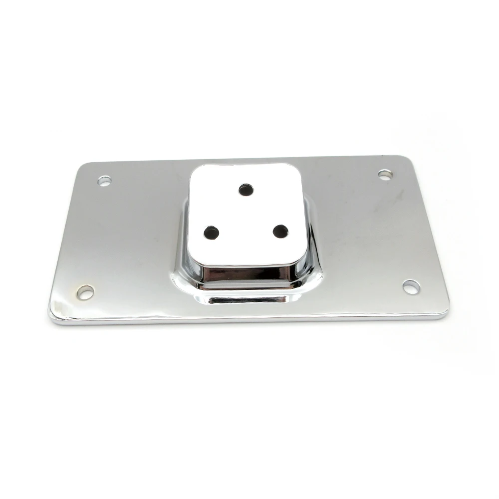 Набор монтажных кронштейнов для номерного знака Laydown, набор Icludes хромированный угловой кронштейн для номерного знака с задней пластиной. Два резиновых прокладки используются для управления вибрацией и углом, позволяя угол крепления быть поднятым или опущенным по мере необходимости. В комплект входит все необходимое монтажное оборудование.