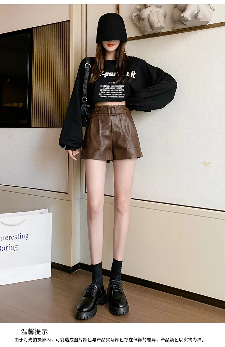 Отзывы о Новинка 2021 года женские шорты из искусственной кожи подходящие ко всему короткие
