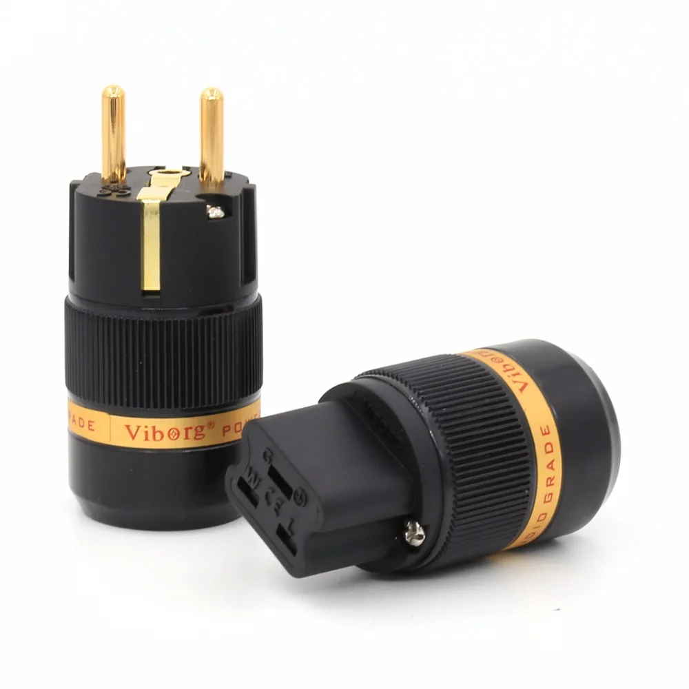 Пара Viborg VE501G + VF520G 99.999% чистая медь 24K позолоченный ЕС мужской и 20A IEC Женский Разъем питания