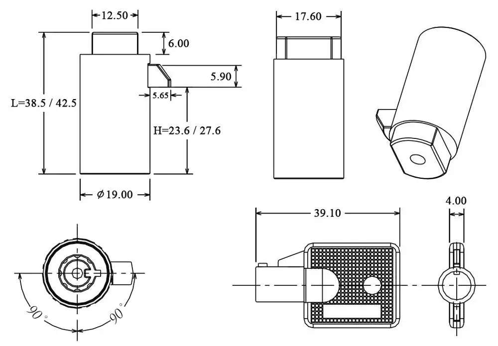 Общая длина:38,5 мм anb 42,5 мм опционально