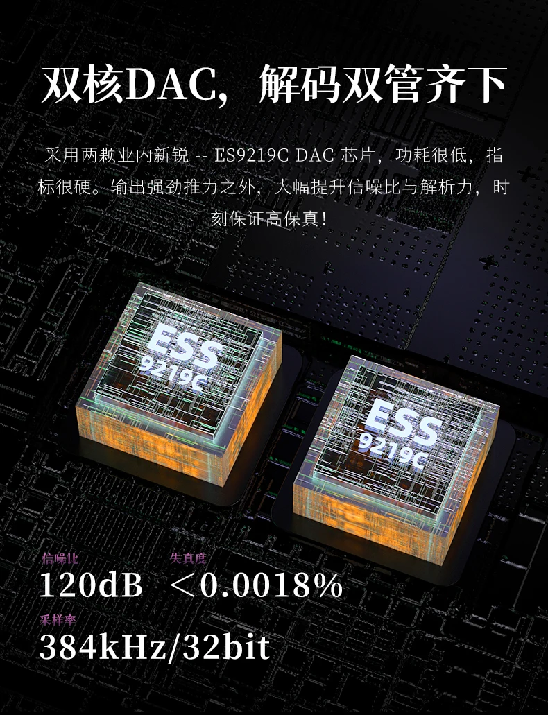 - Upgraded to ESS Sabre ES9219C DAC/AMPs