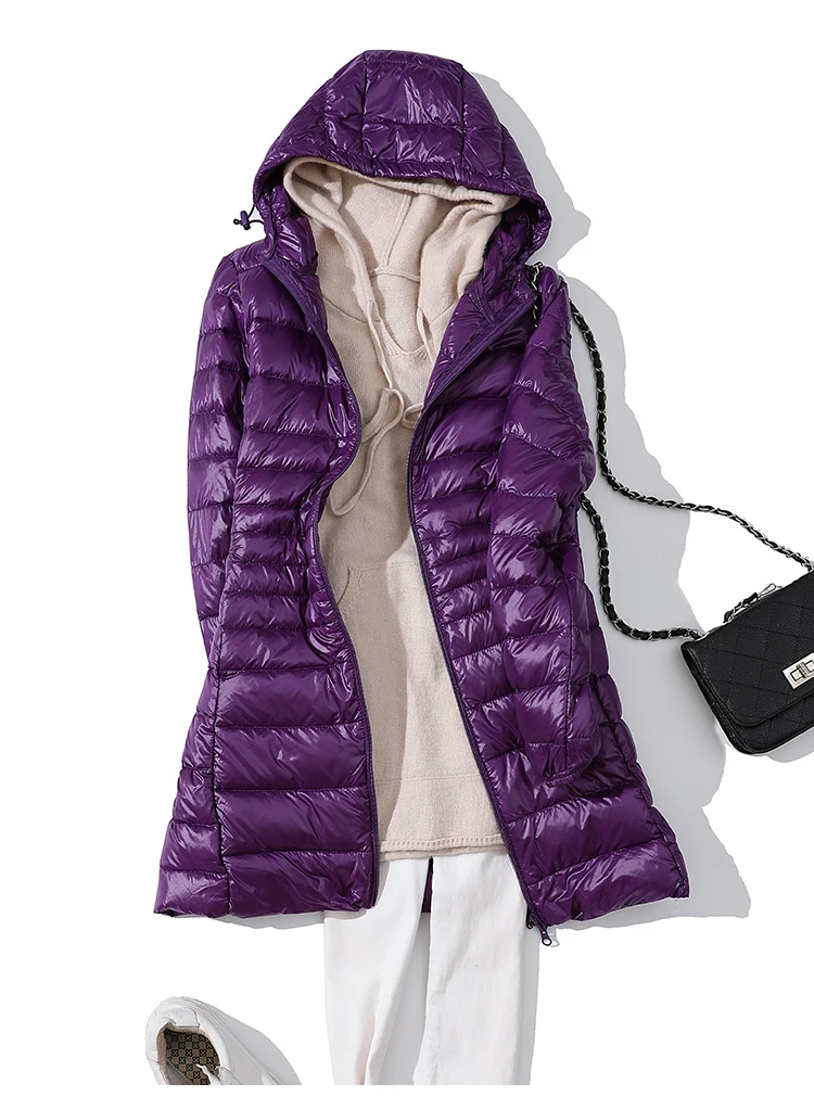 Отзывы о Женский пуховик зимняя длисветильник Тонкая Повседневная куртка-пуховик