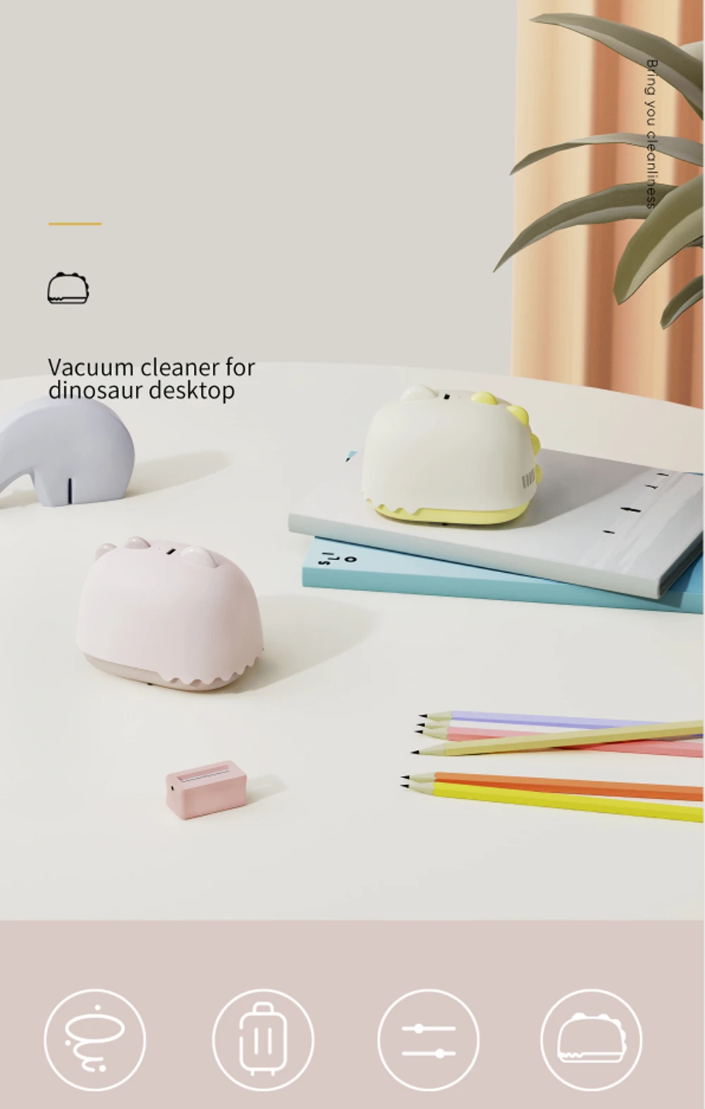 Мини-Настольный пылесос, милый динозавр, форма рабочего стола, Пылезащитная бумага, Очищающий Инструмент, детский стол, ластик, крошки, Машинка для сбора