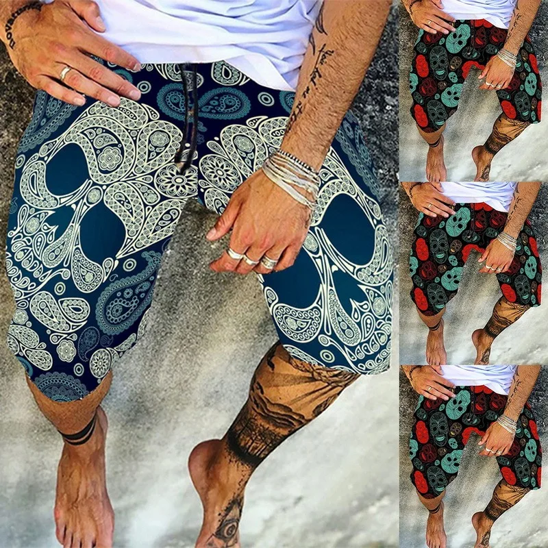 Отзывы о Шорты мужские с принтом черепа хлопок и лен повседневные свободные пляжные