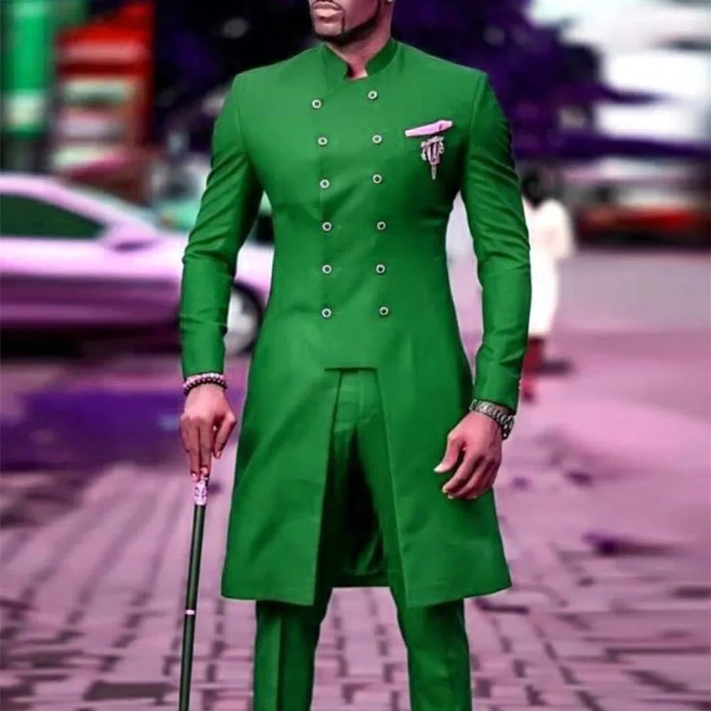 Отзывы о Dubai African Long Coat With Pants Formal Men Suits Blazers Custom Made Royal Blue Double Breasted Jacket Slim Fit Ternos Tuxedo | Мужская