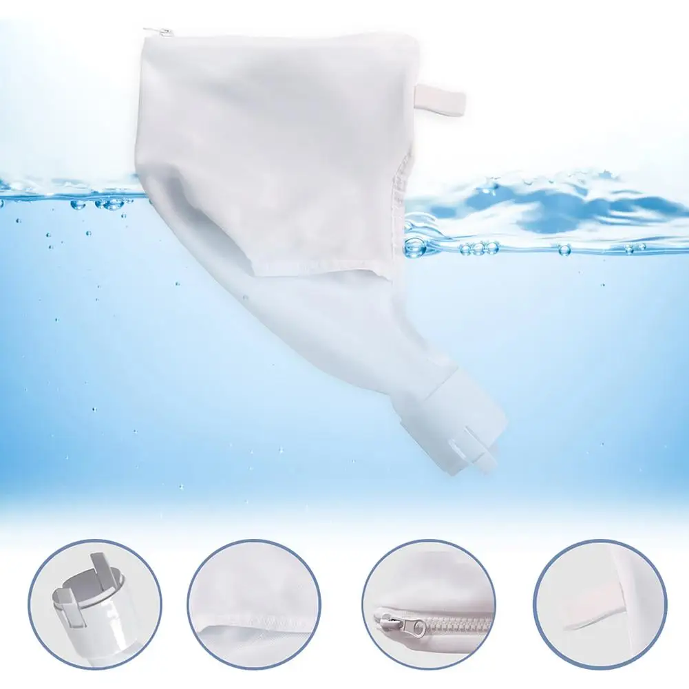 Точки пули:1. Нейлоновые сумки для уборки: эти нейлоновые сетчатые сумки для уборки бассейна с прочной прошивкой и плетением колготок блестят, собирая мусор или захватывая листья и небольшие веточки, не разрывая в нижней части бассейна.